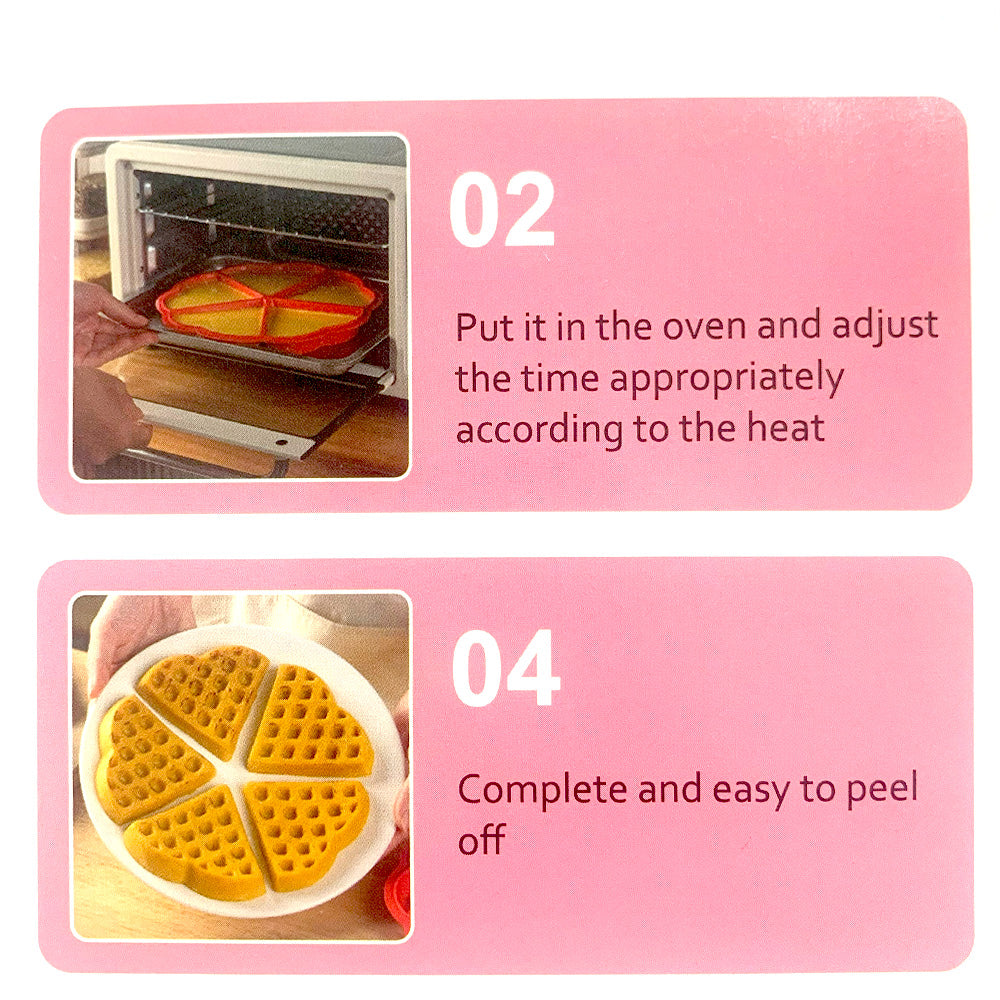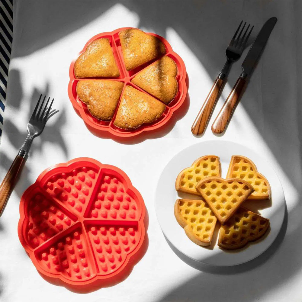 تُخبز الوافل بالتساوي: قالب الوافل الرائع على شكل قلب يتحمل درجات حرارة الفرن، ويُخبز بالتساوي. مناسب للميكروويف والفرن والمجمد.