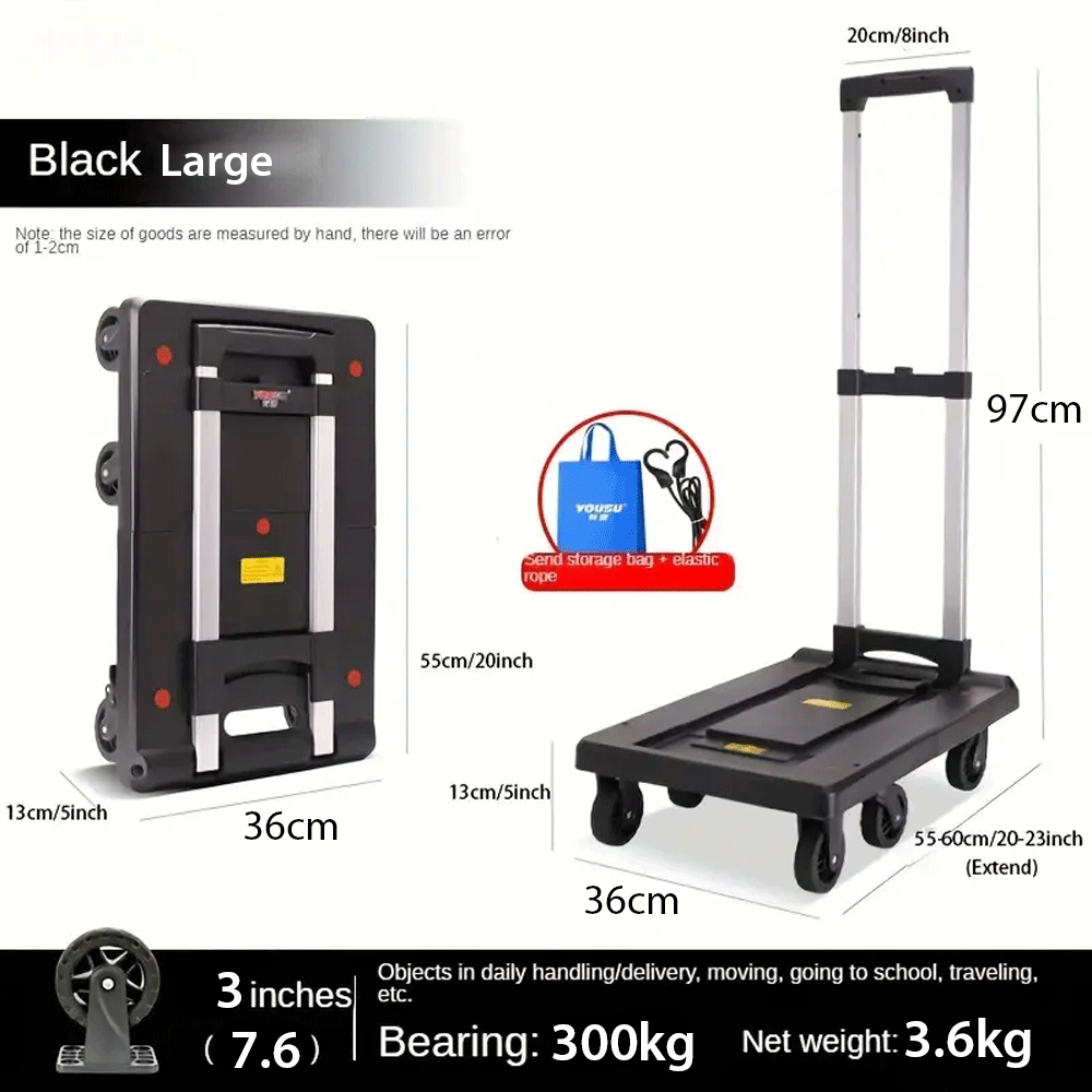 عربة أدوات قابلة للطي متينة ومضغوطة - عربة يدوية محمولة للتخزين والتنظيم المنزلي مع بناء قوي من البلاستيك والألمنيوم
