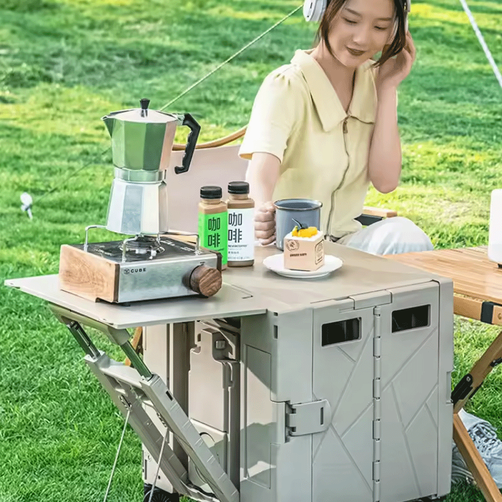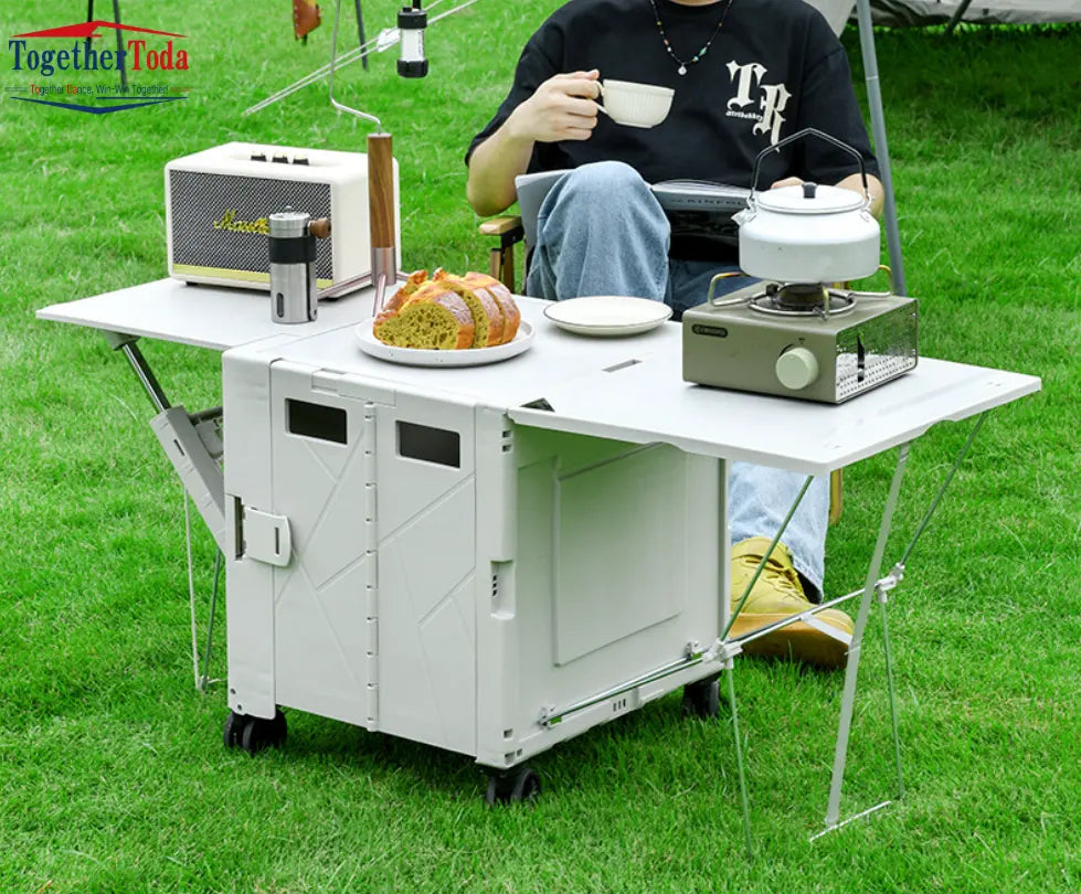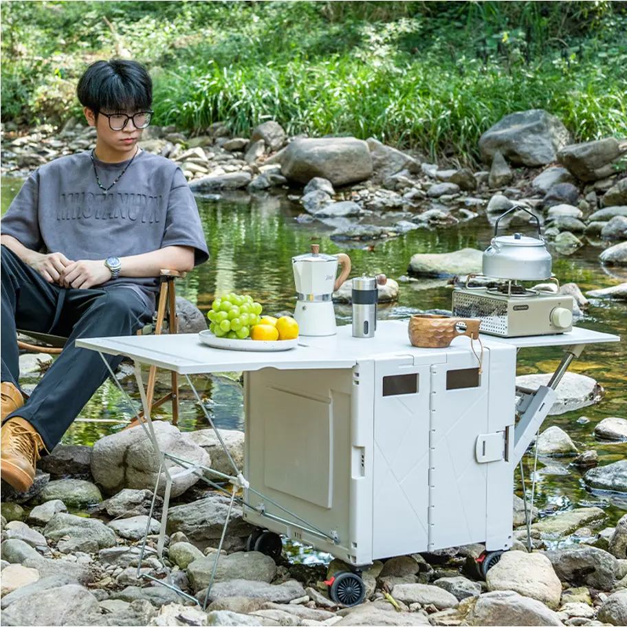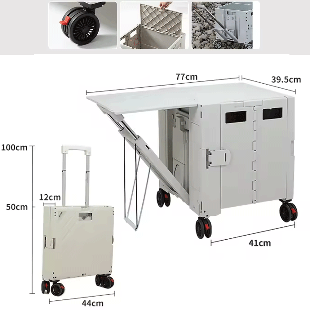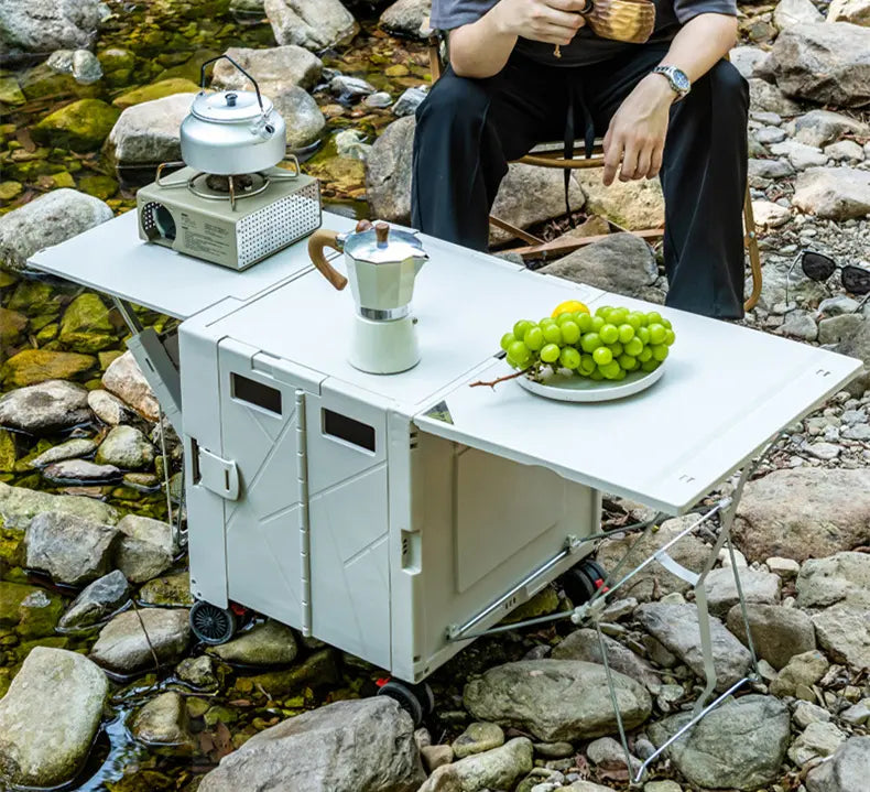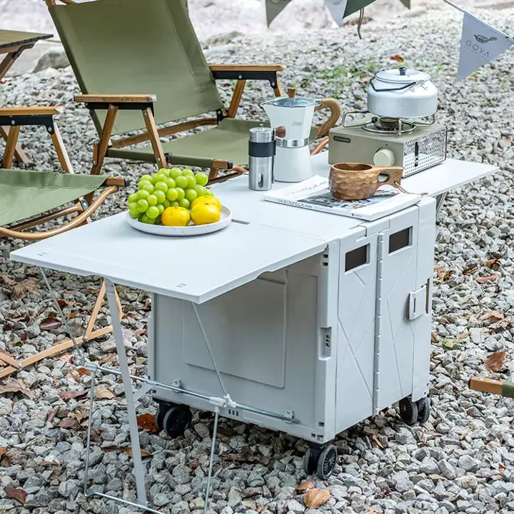 عربة مع طاولة تخييم قابلة للطي