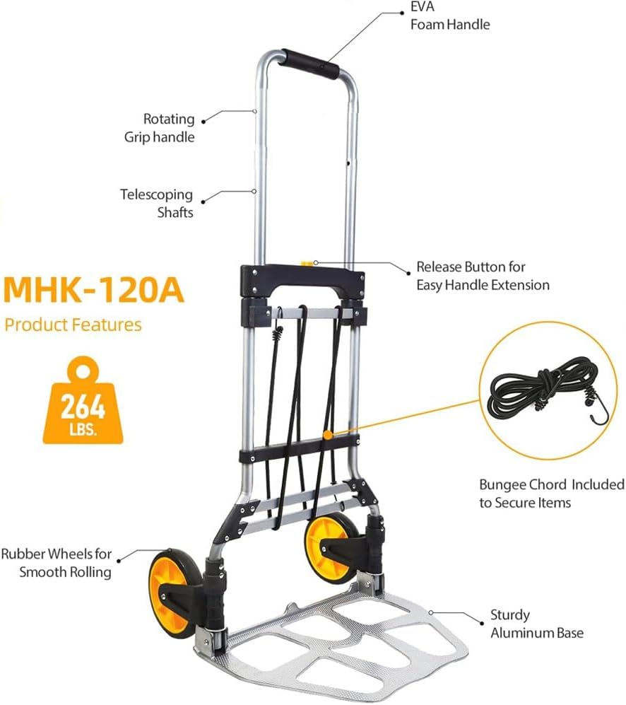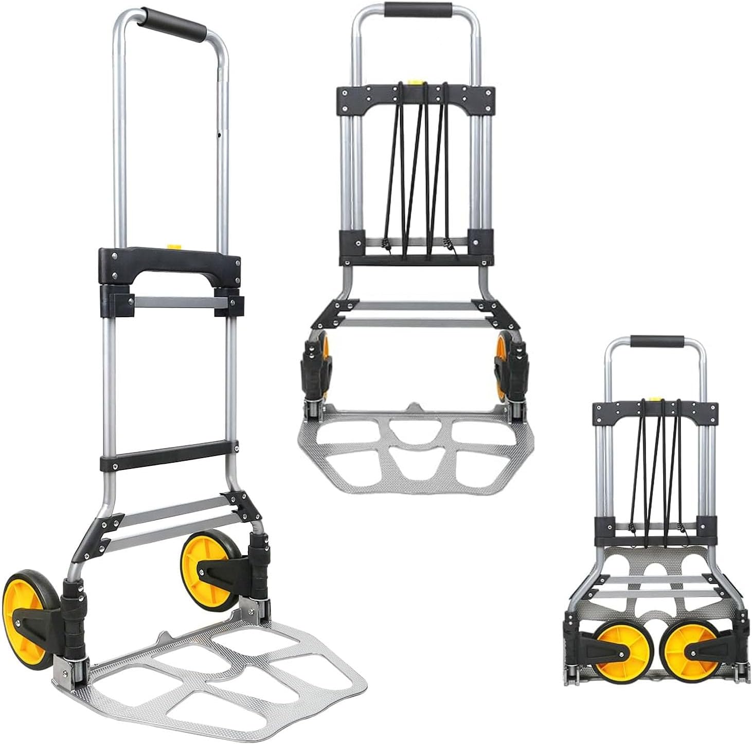 عربة يدوية قابلة للطي من الالومنيوم بسعة 330 باوند ( 150 كيلو ) ، عربة امتعة شديدة التحمل مع مقبض تلسكوبي، عربة يد بعجلات قابلة للطي