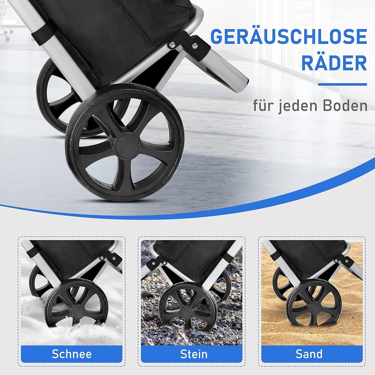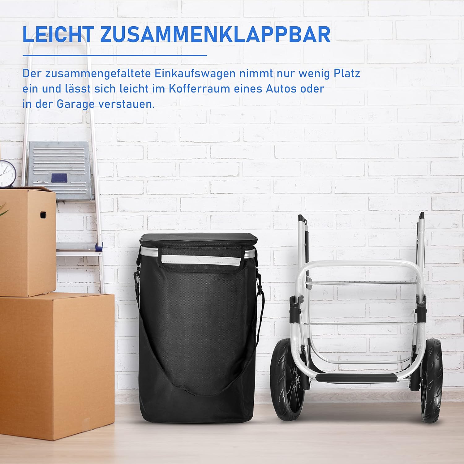 عربة التسوق المصنوعة من البوليستر خفيفة الوزن ومتينة بشكل خاص، حيث أن الإطار مصنوع من الألومنيوم عالي الجودة - بفضل حزام الكتف، يمكن أيضًا استخدام عربة التسوق المتنقلة كحقيبة حمل