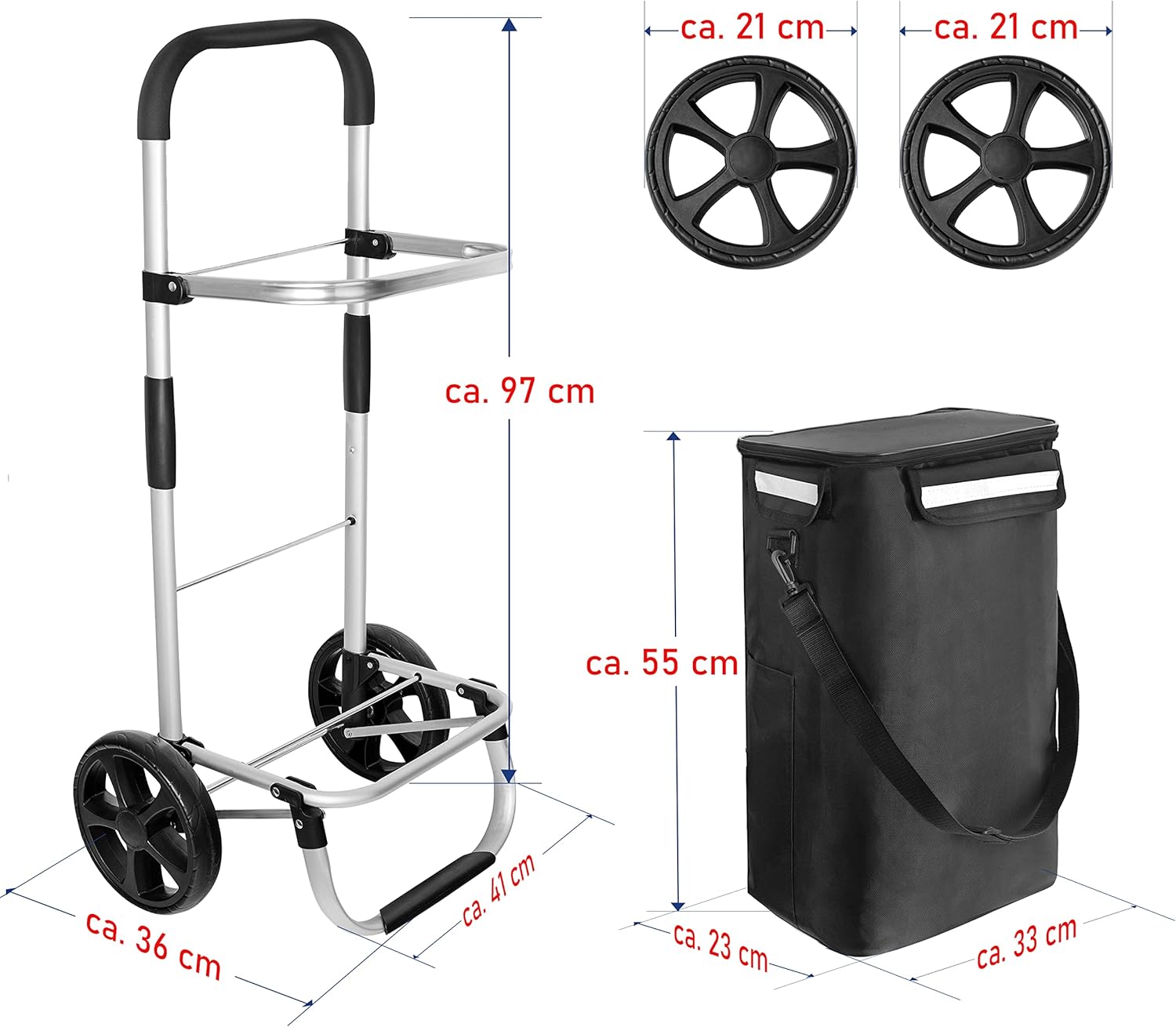 أبعاد العربة تقريبًا 41 × 36 × 97 سم. مثالية للتسوق بكميات كبيرة: يمكن تحميل العربة بما يصل إلى 45 كجم