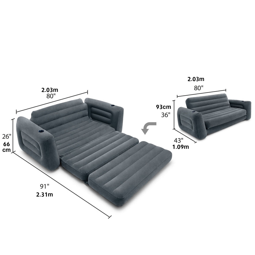 - الحجم التقريبي بعد النفخ: 40 بوصة × 88 بوصة × 26 بوصة ( 2.03 متر × 91 سم × 1.09 متر ) (الأريكة)