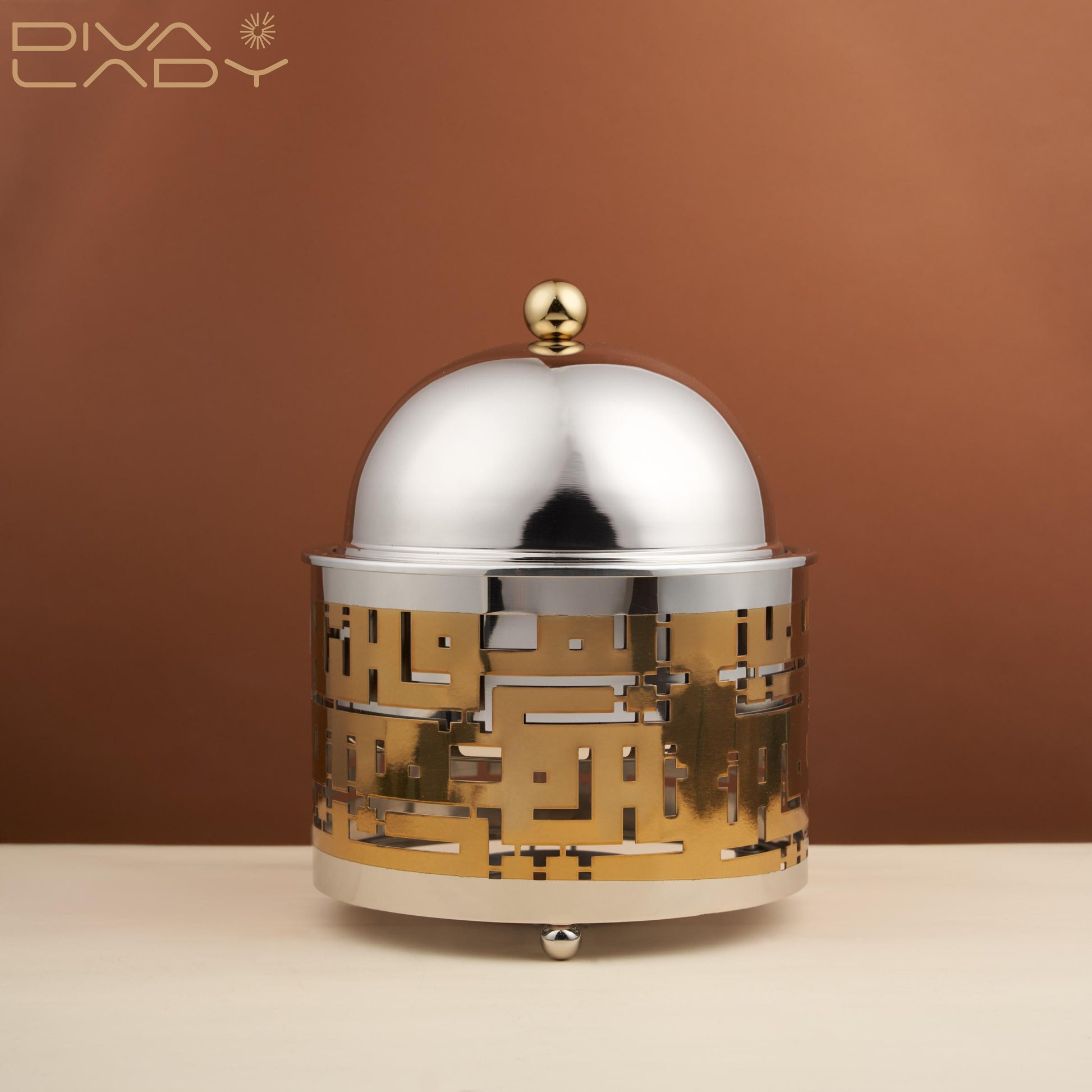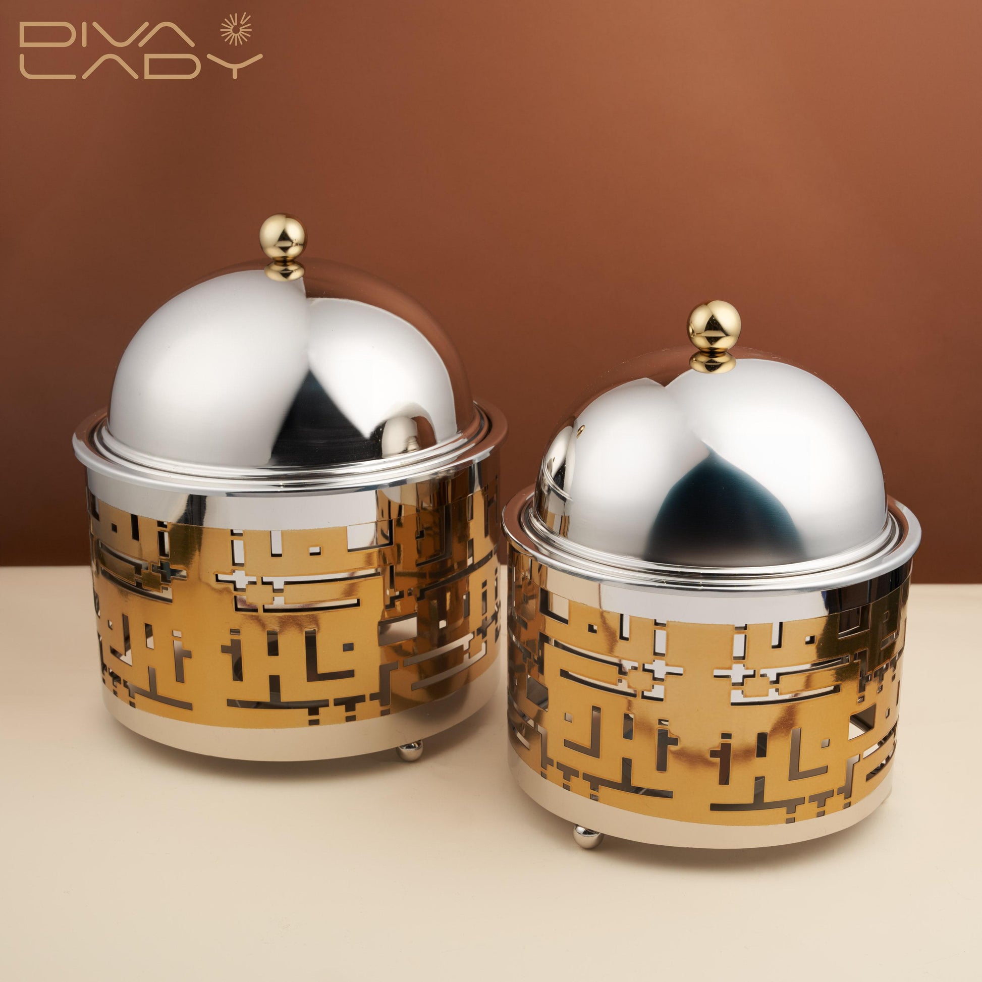 سخان طعام مصنوع من الاستانلس ستيل . اللون فضى مع ذهبى .قدمي طعامكِ بأناقة وأضفي لمسة عصرية على طاولة الطعام