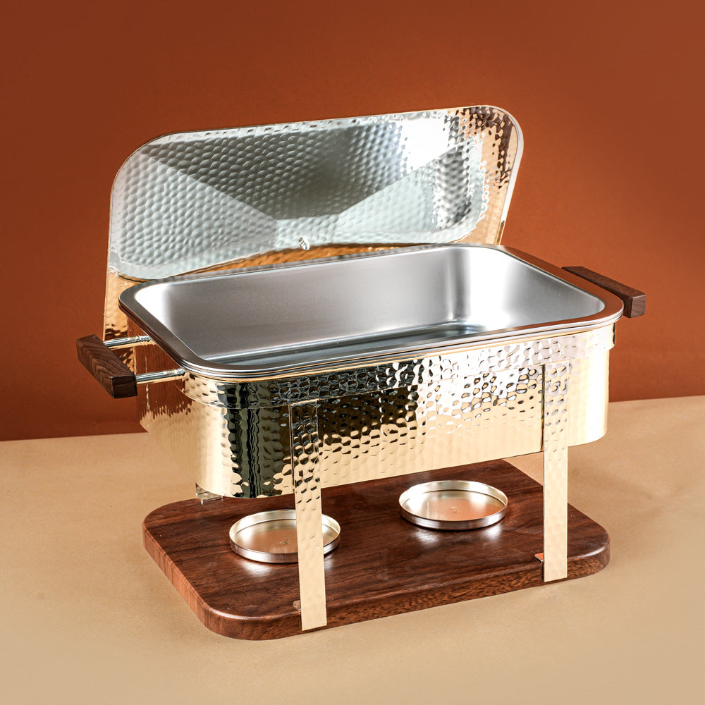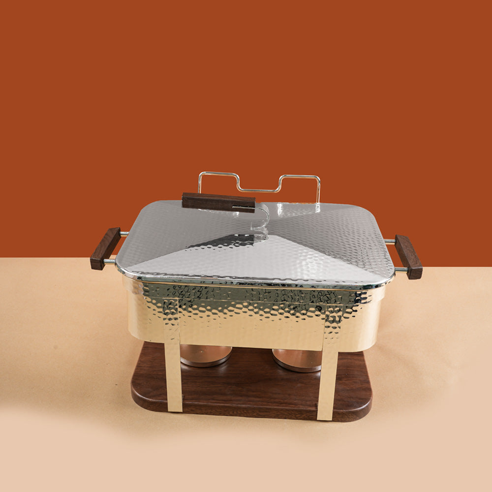 هو سخان طعام بتصميم أنيق يجمع بين المعدن وقاعدة لونها خشبى مزود بمقبض خشبى لسهوله الفتح والاغلاق ويحتوي على موضع مخصص لوضع شمعة أو مصدر حرارة للحفاظ على الطعام دافئًا