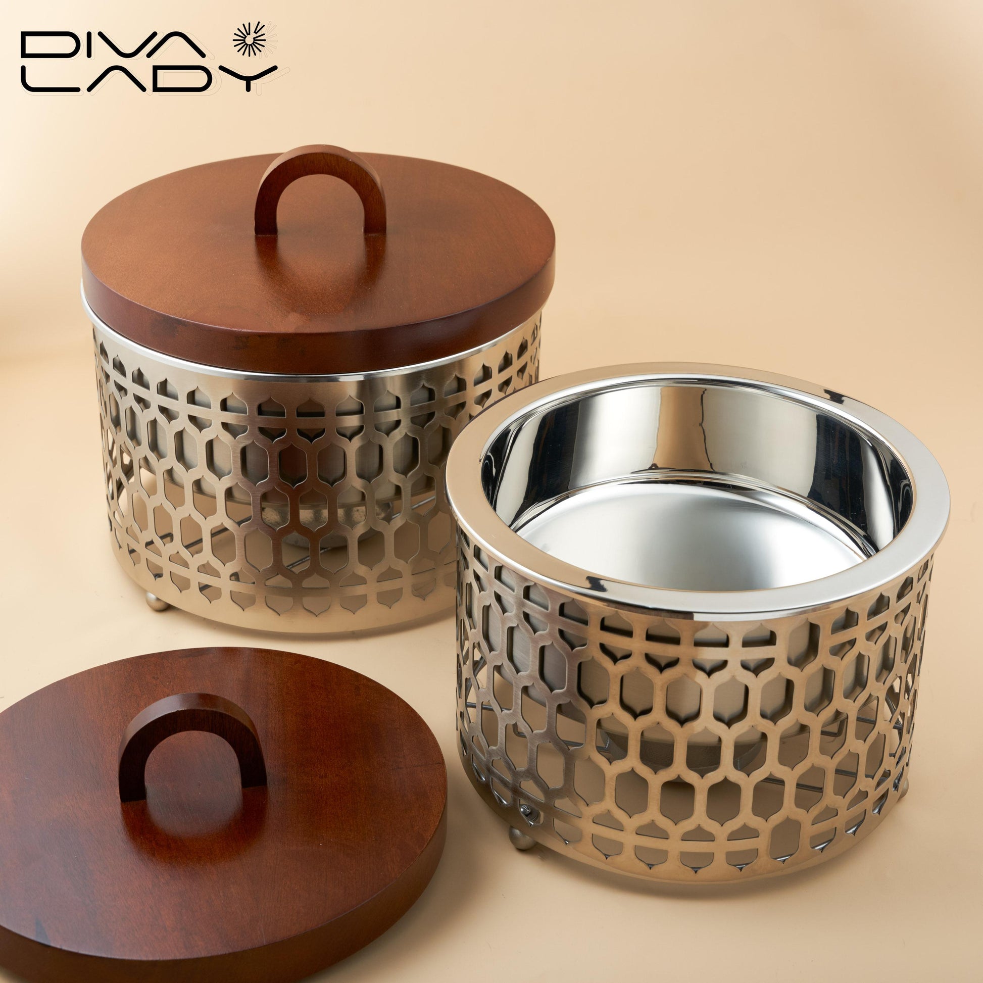 سخان طعام مصنوع من الاستانلس ستيل اللون الاسود مع غطاء من الخشب و مبطن بالاستانلس ستيل .قدمي طعامكِ بأناقة وأضفي لمسة عصرية على طاولة الطعام