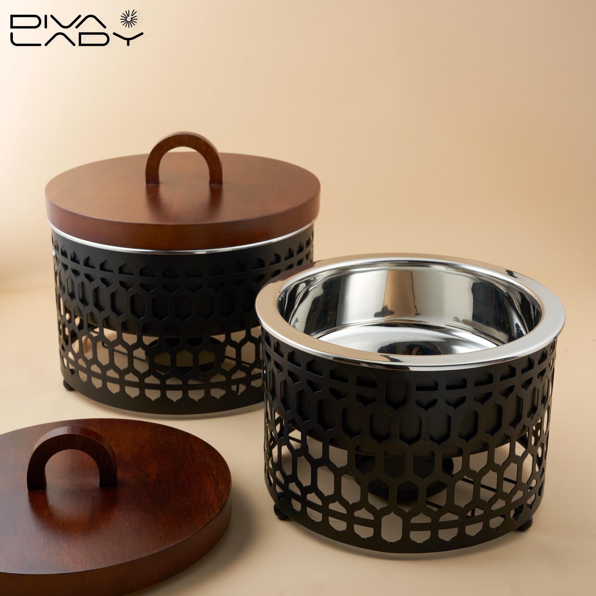 سخان طعام مصنوع من الاستانلس ستيل اللون الاسود مع غطاء من الخشب و مبطن بالاستانلس ستيل قدمي طعامكِ بأناقة وأضفي لمسة عصرية على طاولة الطعام