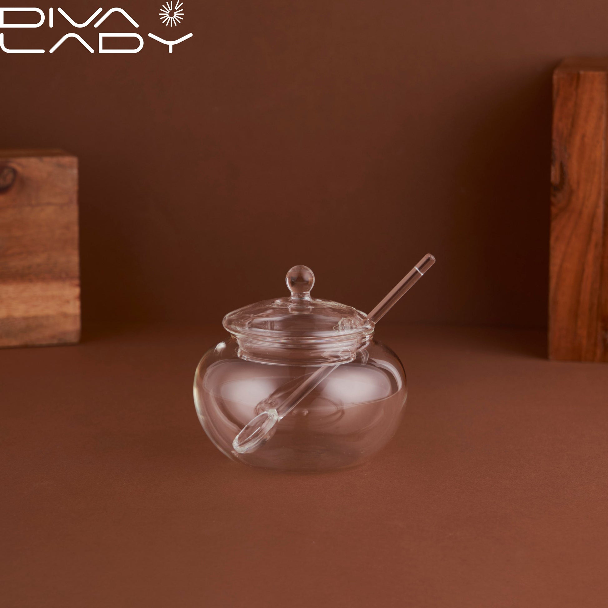 هذة السكرية الأنيقة المصنوعه من زجاج عالي الجودة وبتصمميم مميز وعصرى يزيد من أناقة طاولتك. تأتى مع غطاء وملعقة صمما بشكل أنيق . منتج راقي للغاية