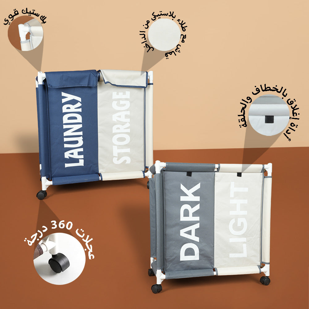 سلة غسيل مكونة من حجرتين مع غطاء