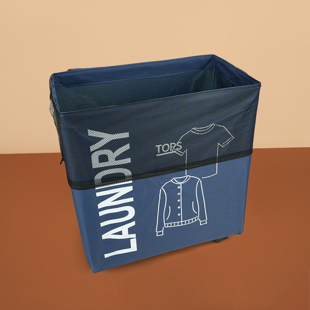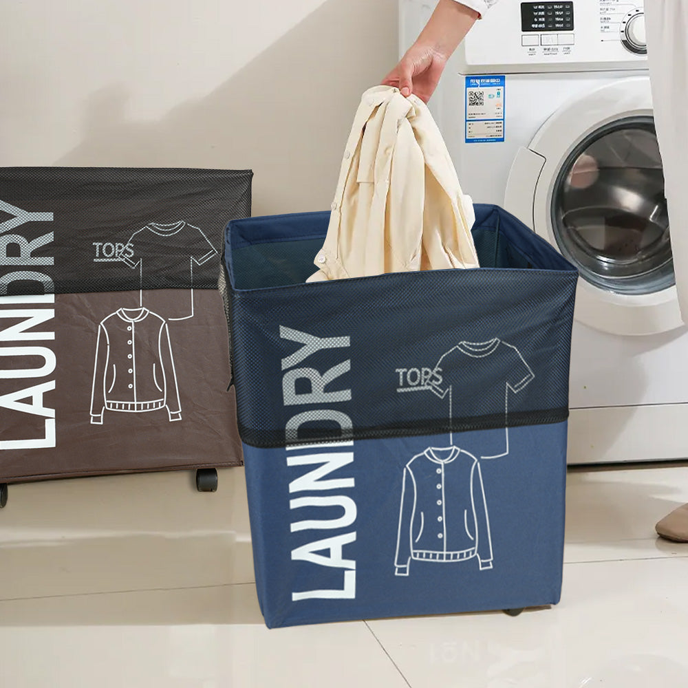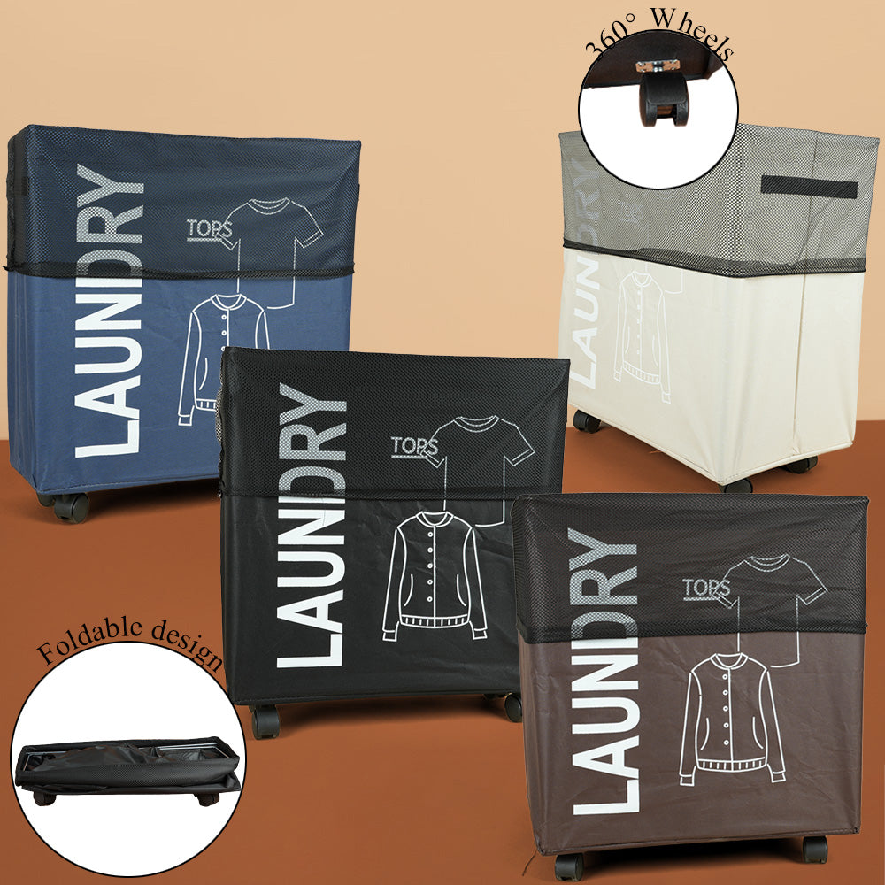 سلة غسيل قابلة للطي مع مقبض وعجلات، موديل: 1