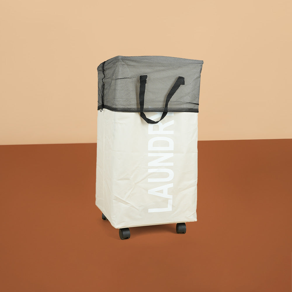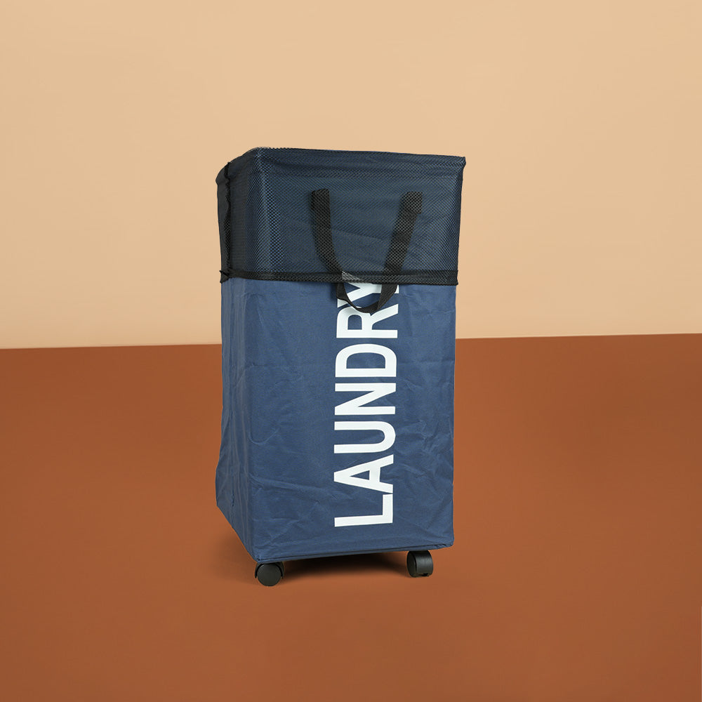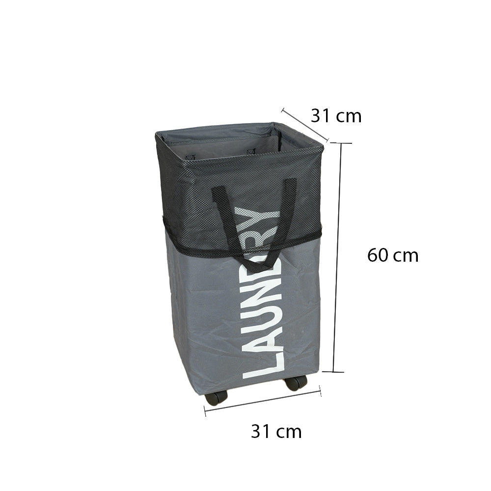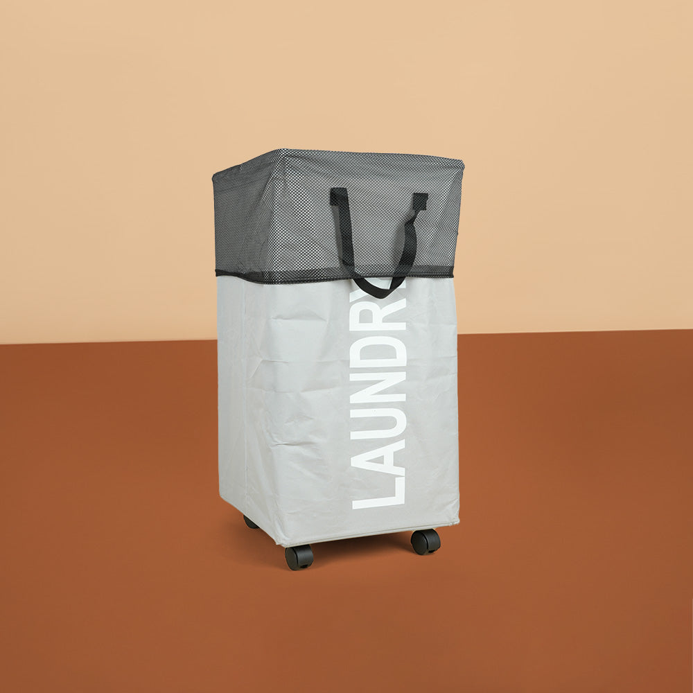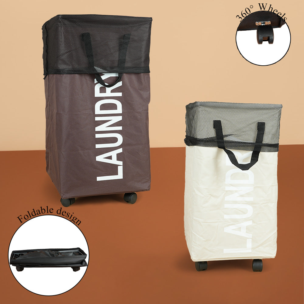سلة غسيل قابلة للطي مع مقبض وعجلات، موديل: 3
