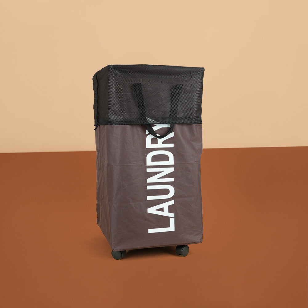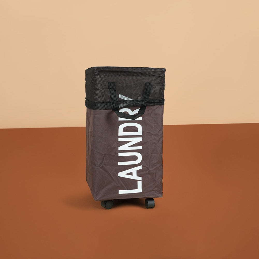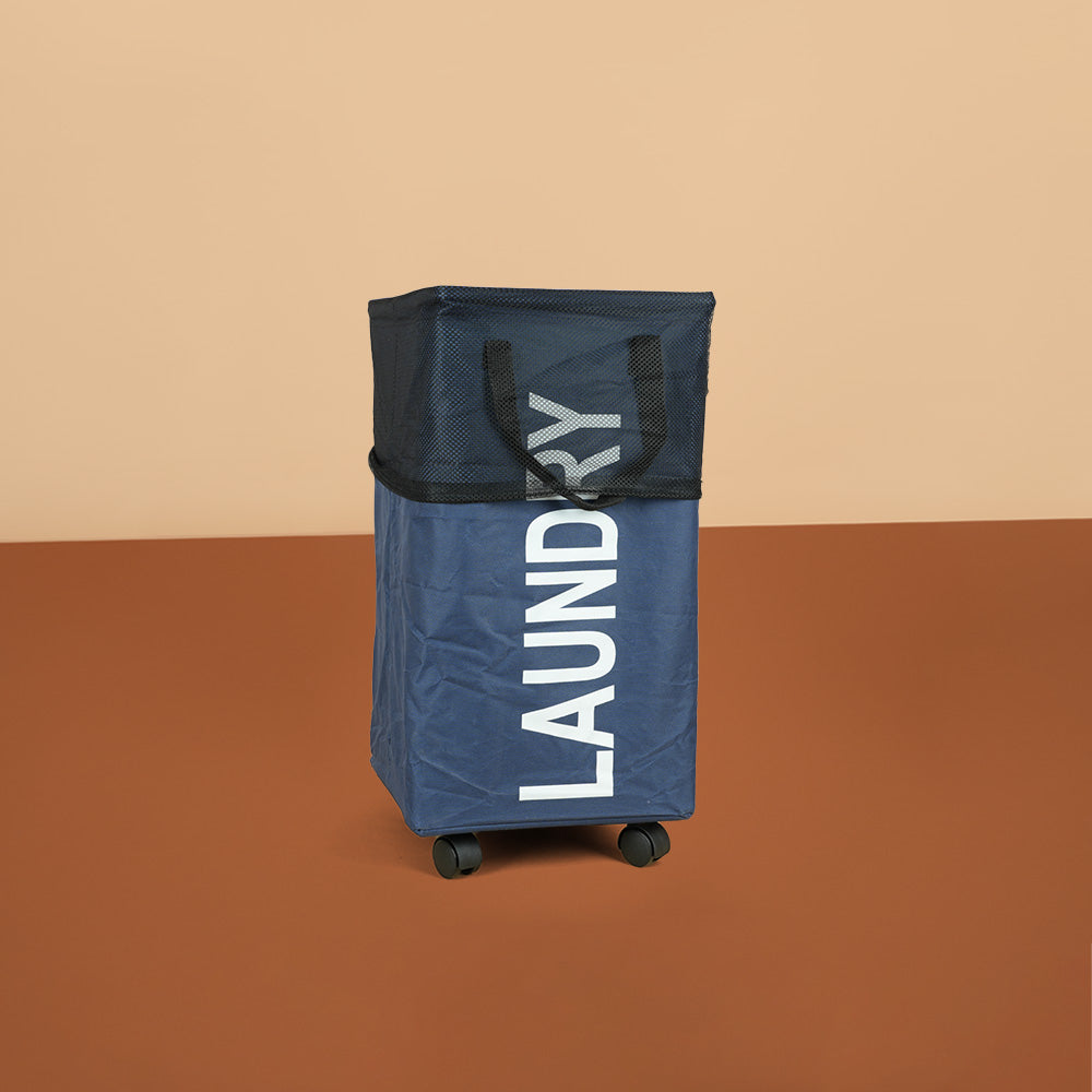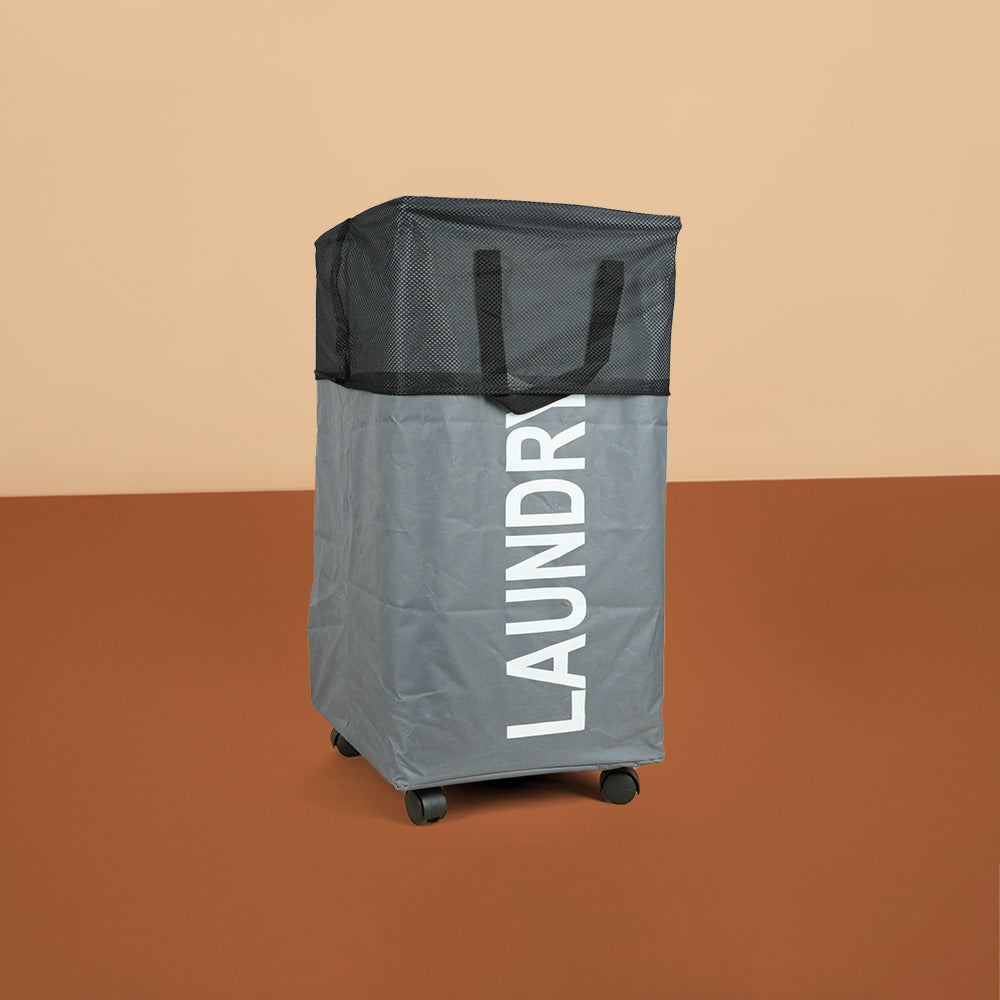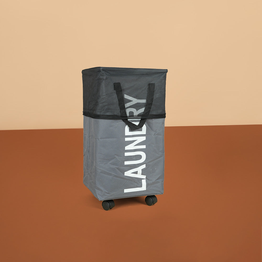 سلة غسيل قابلة للطي مع مقبض وعجلات، موديل: 3