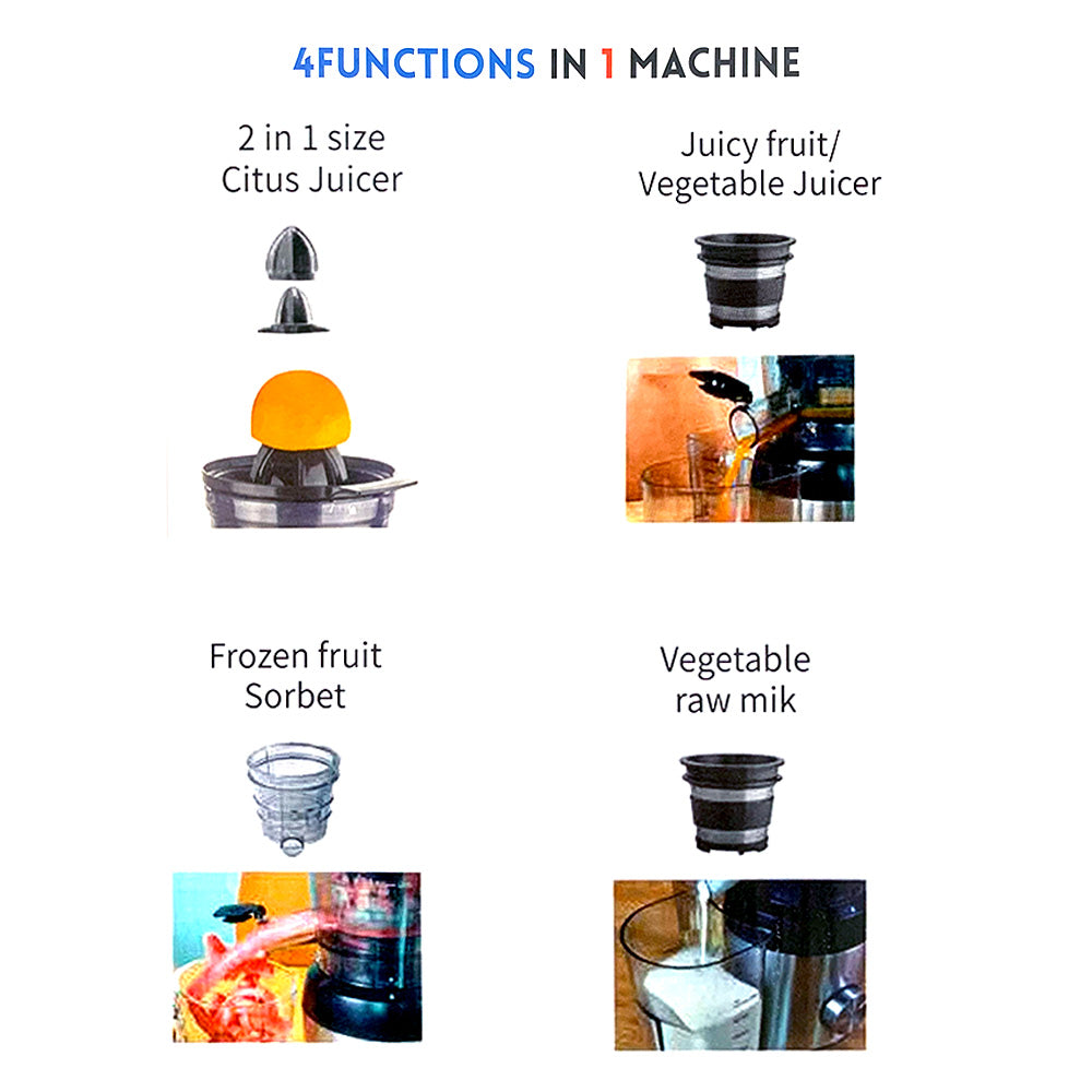 *4 أنواع من الوظائف: عصير الحمضيات، العصير البطيء، الحليب الخام، شربات