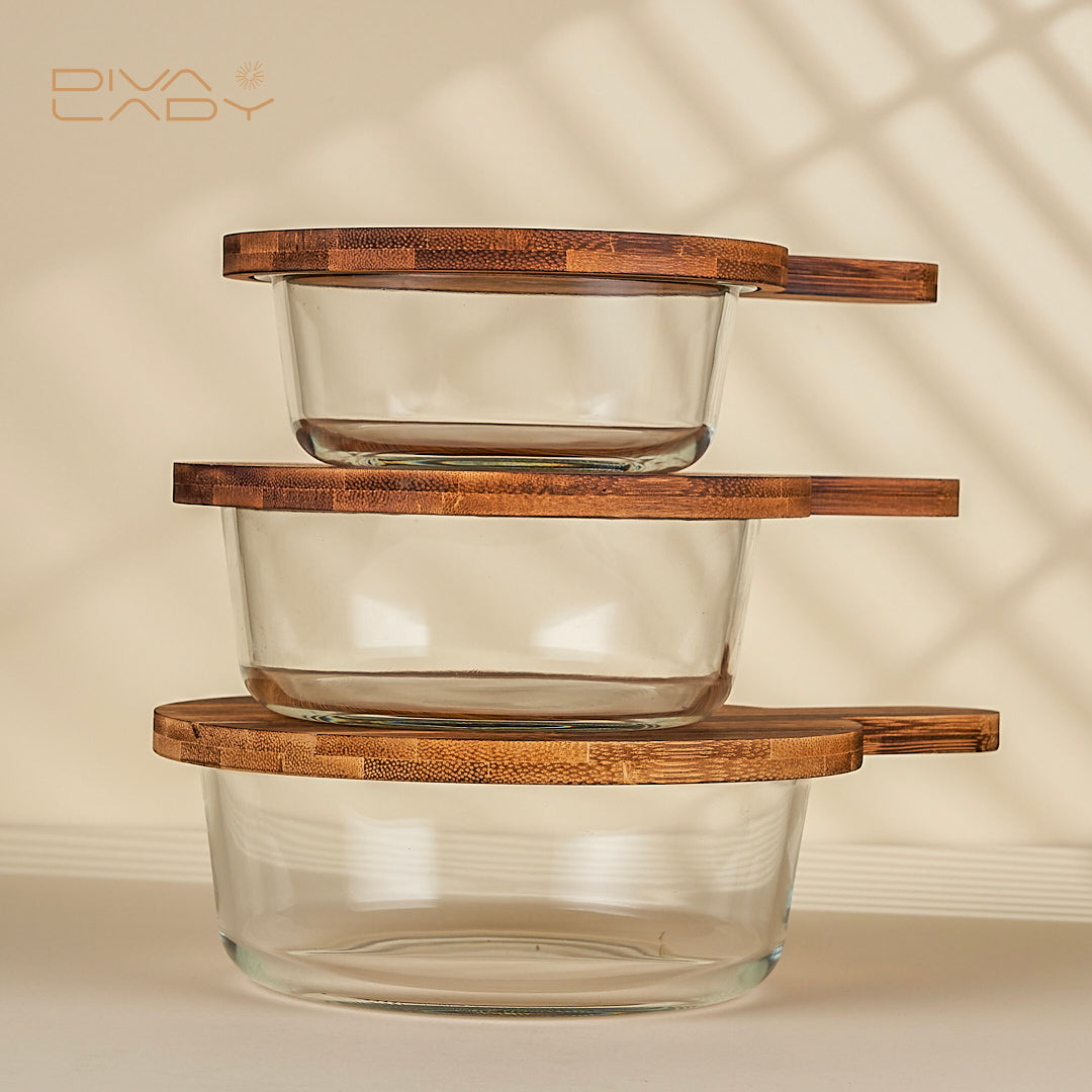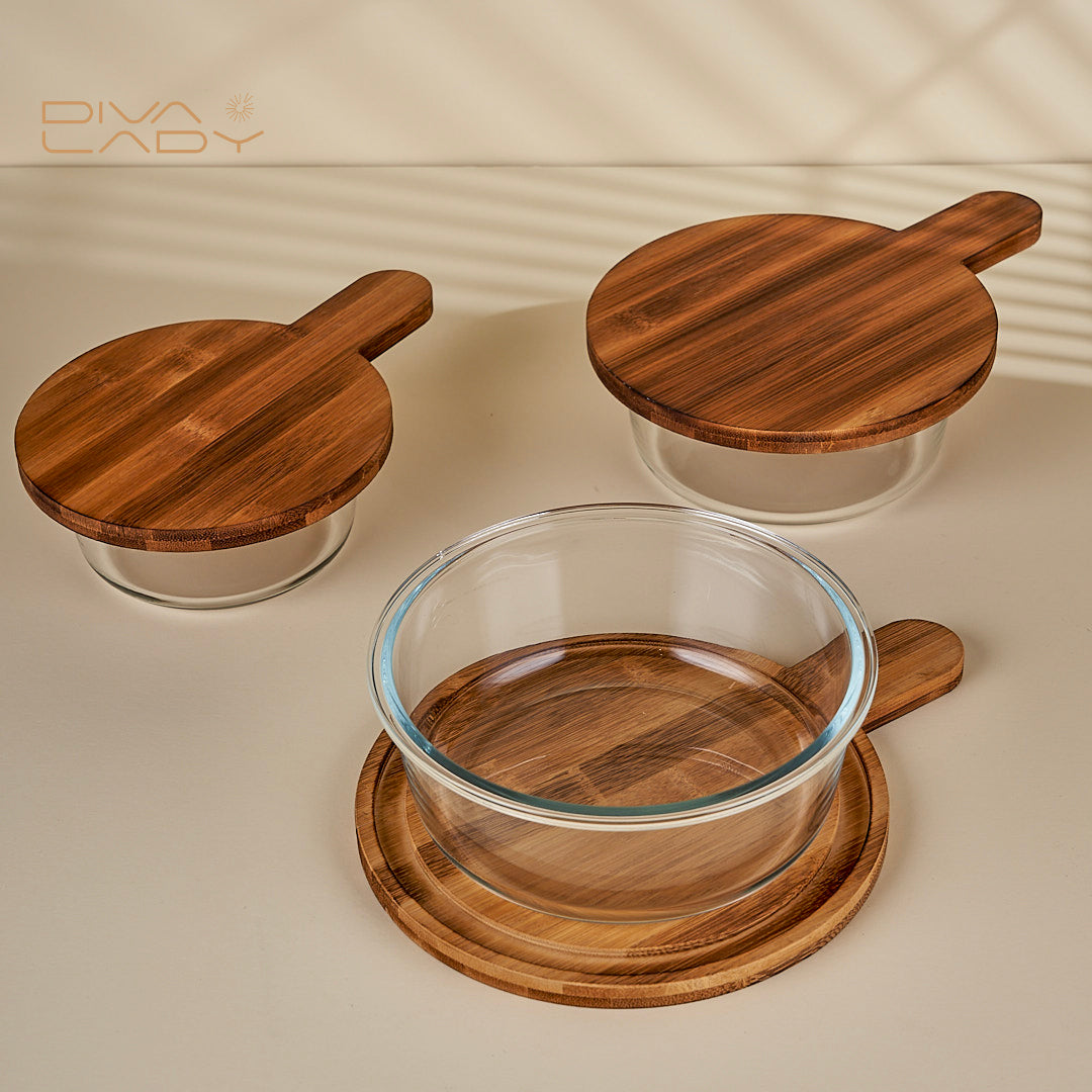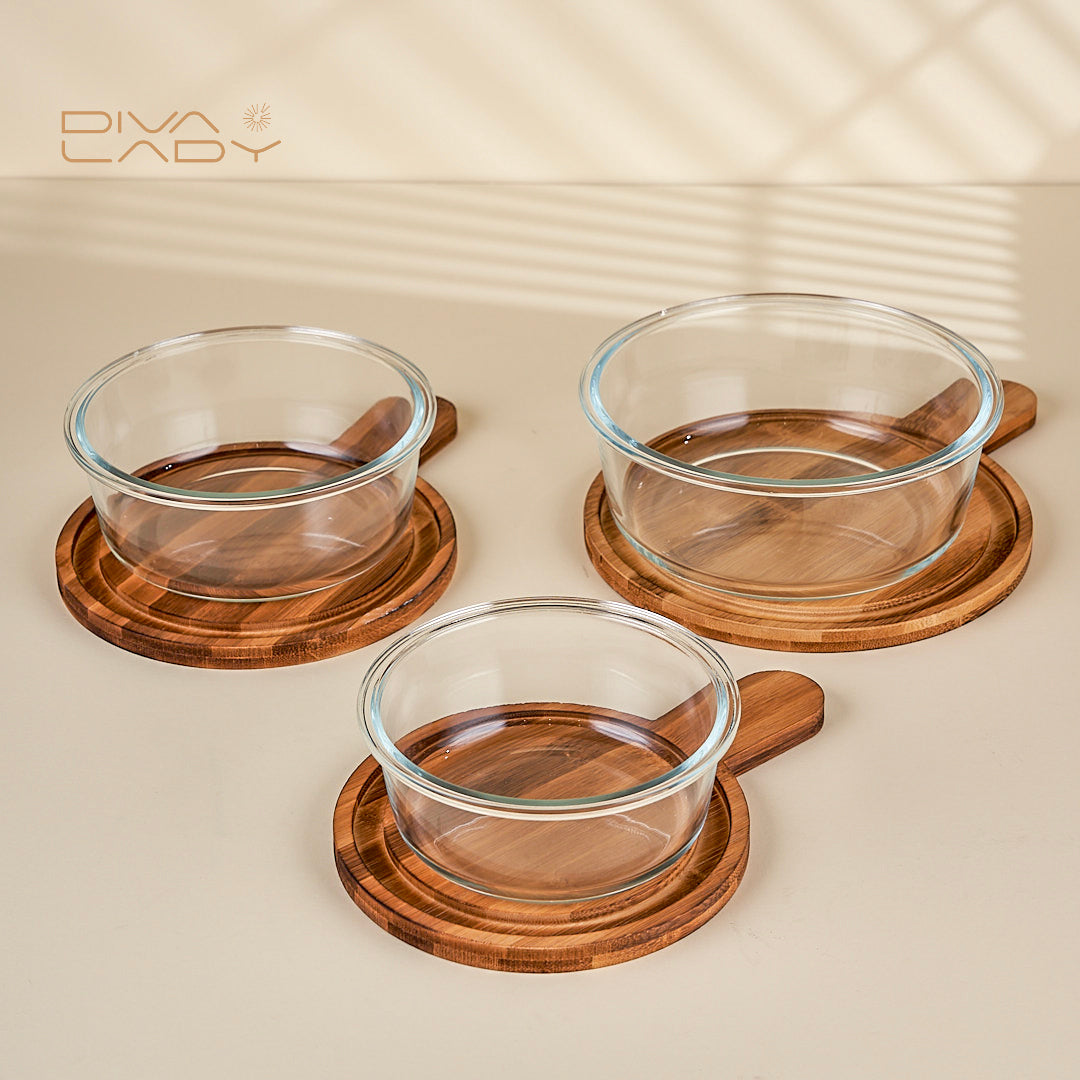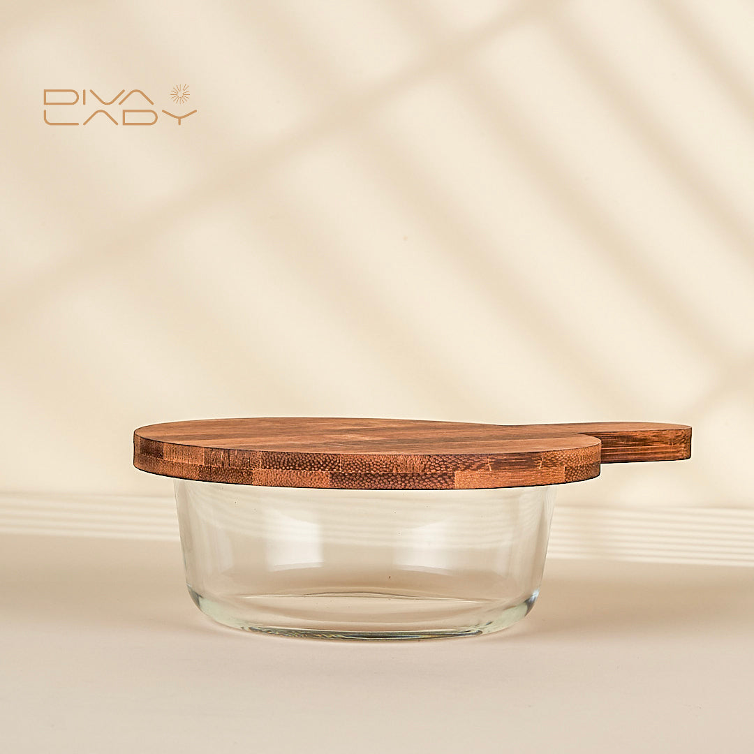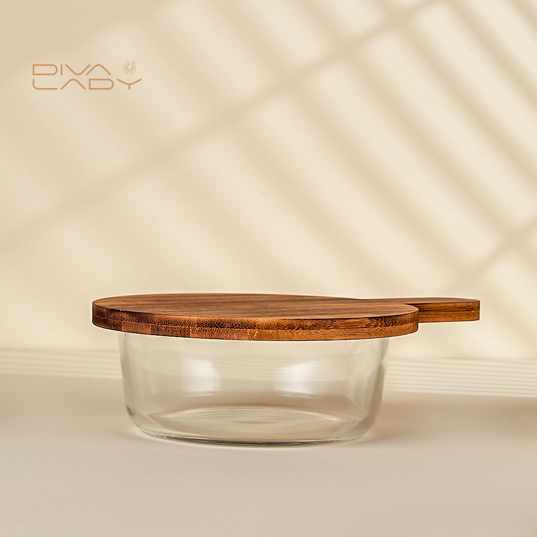 صينية خشب دائرية غطاء زجاج