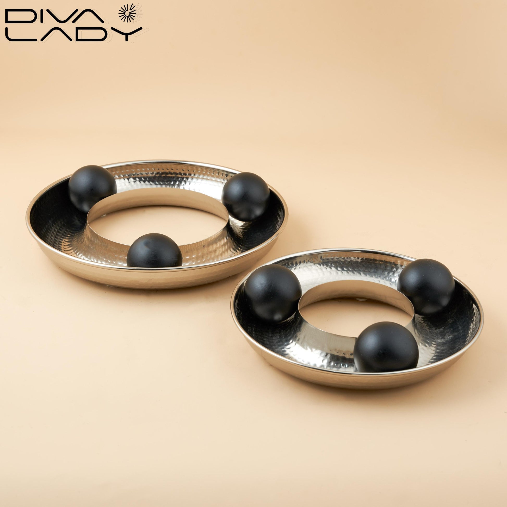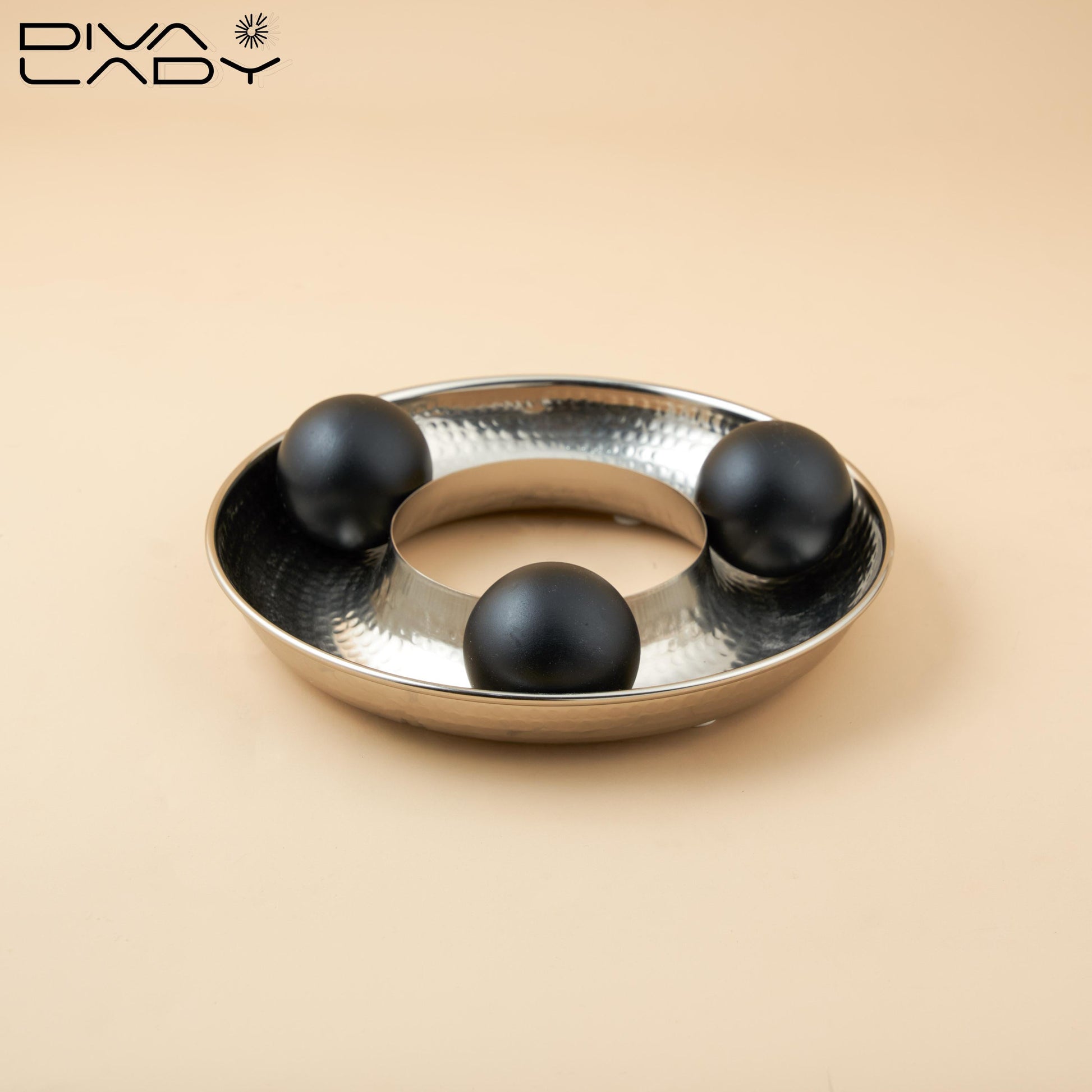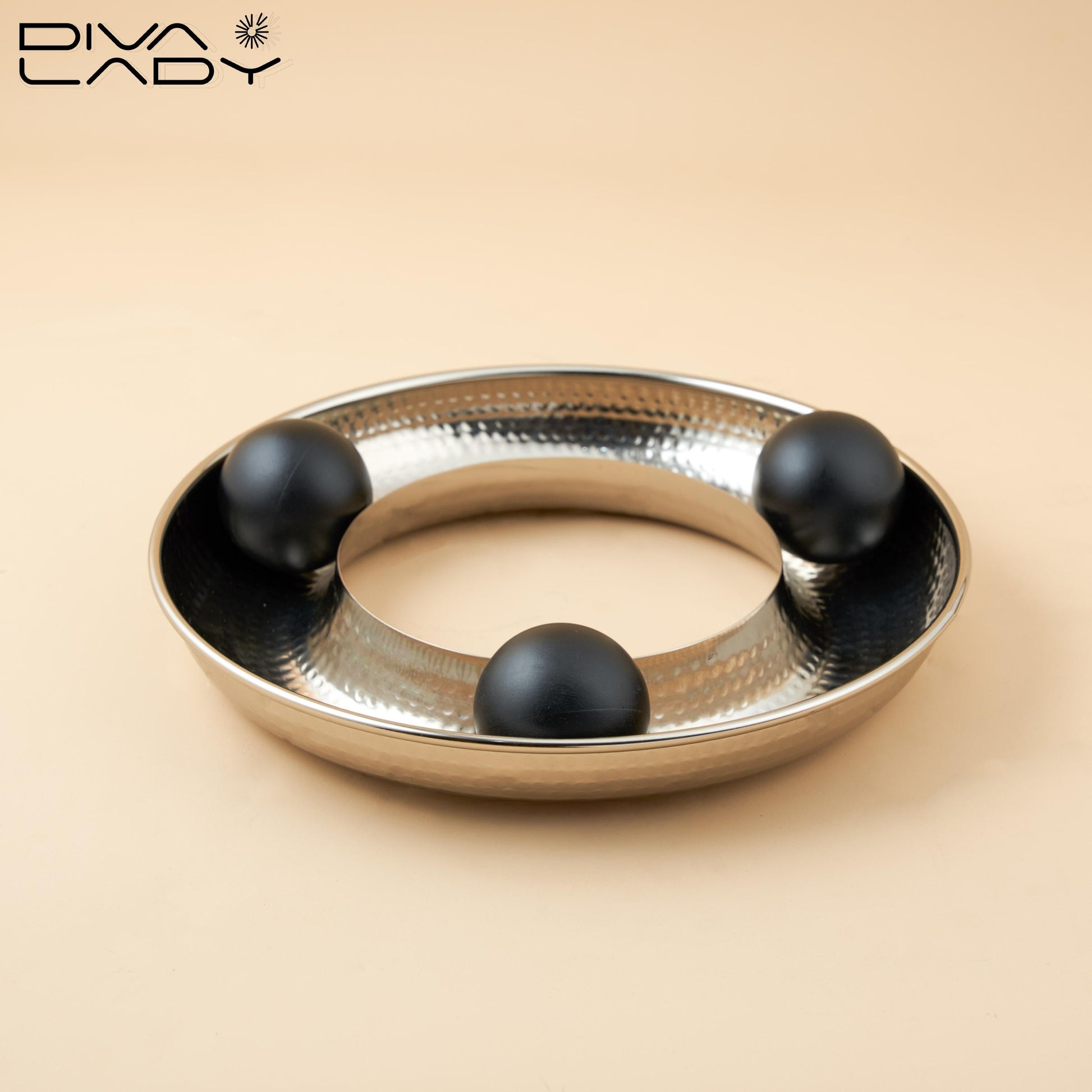 الصينية التي تشاهدها هي قطعة ديكور مبتكرة تجمع بين الأناقة والوظيفة. تتميز بوجود كرات تتحرك بحرية داخل الصينية، مما يضفي عليها مظهرًا ديناميكيًا وجذابًا
