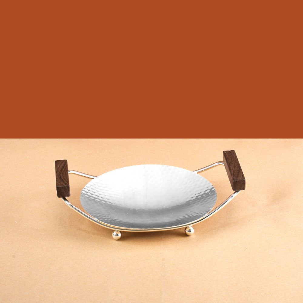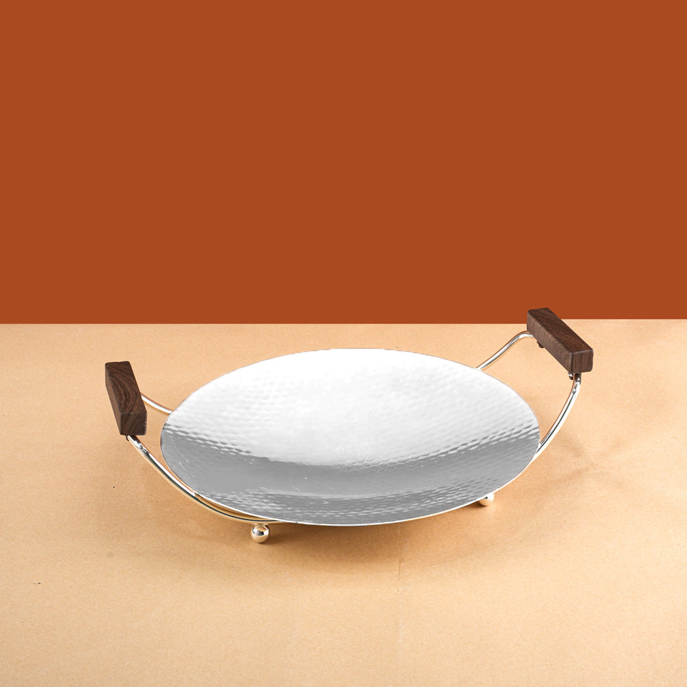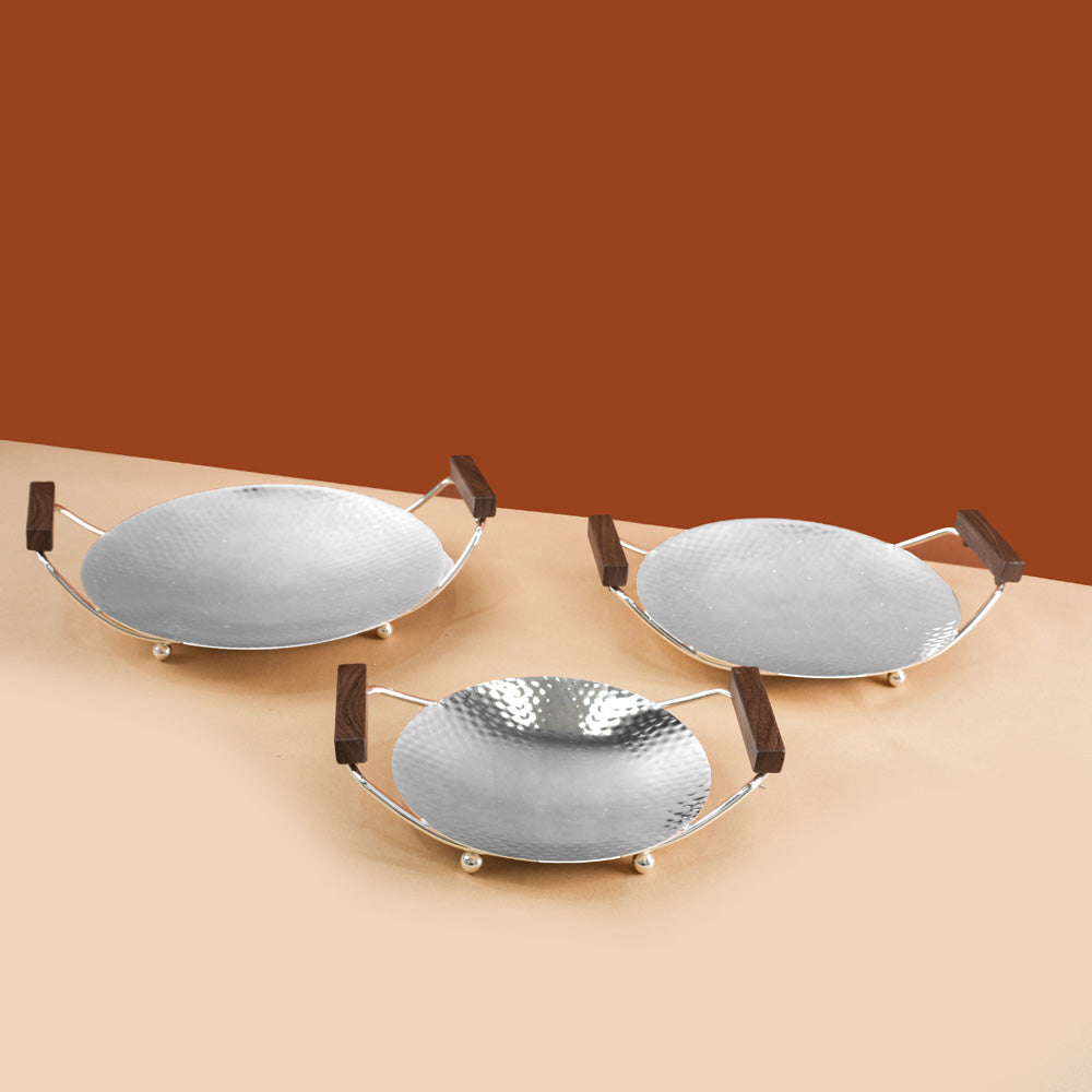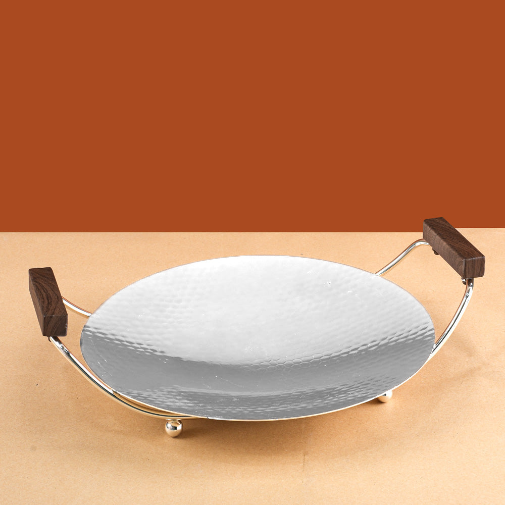 طقم أطباق تقديم فاخرة من الفولاذ المقاوم للصدأ مع مقابض خشبية أنيقة