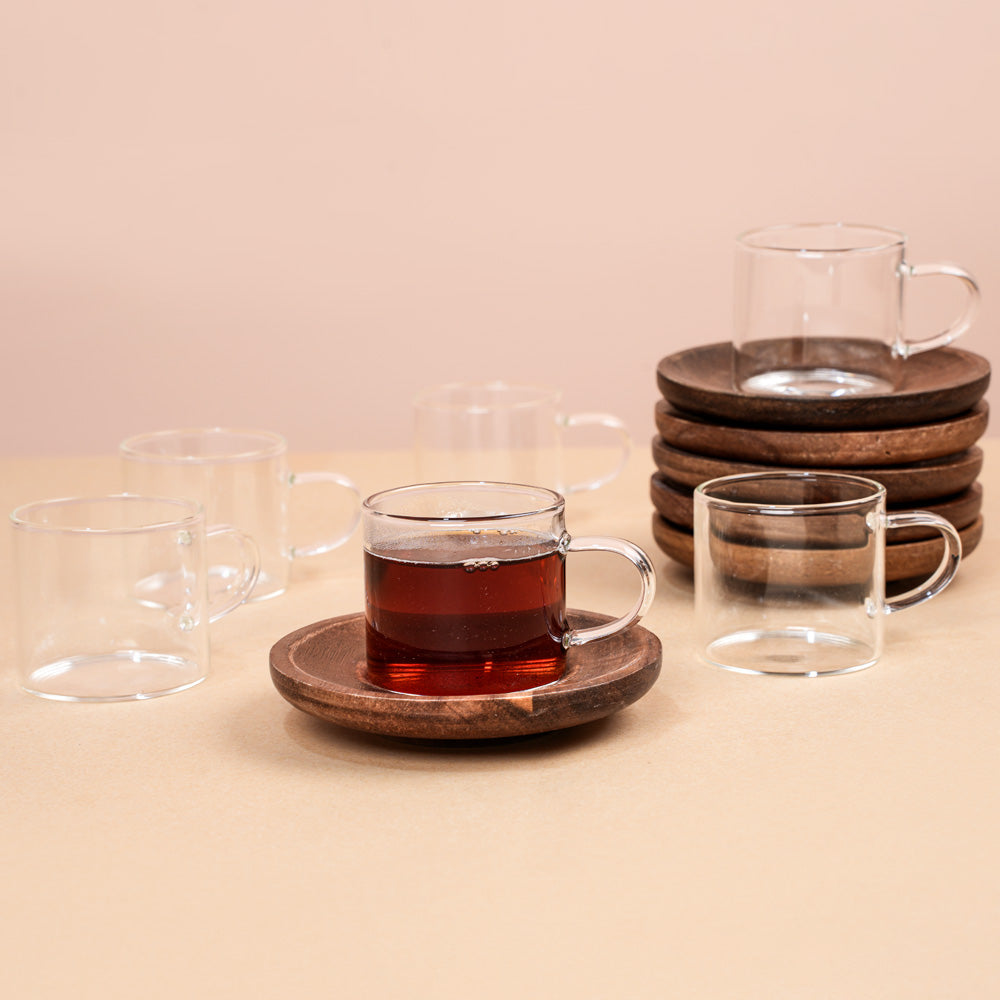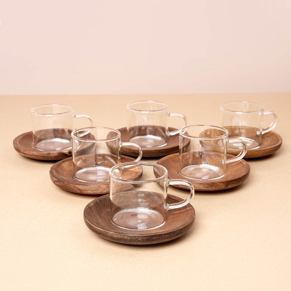 طقم فنجان سبيرسو 6 قطع و6صحون خشبية