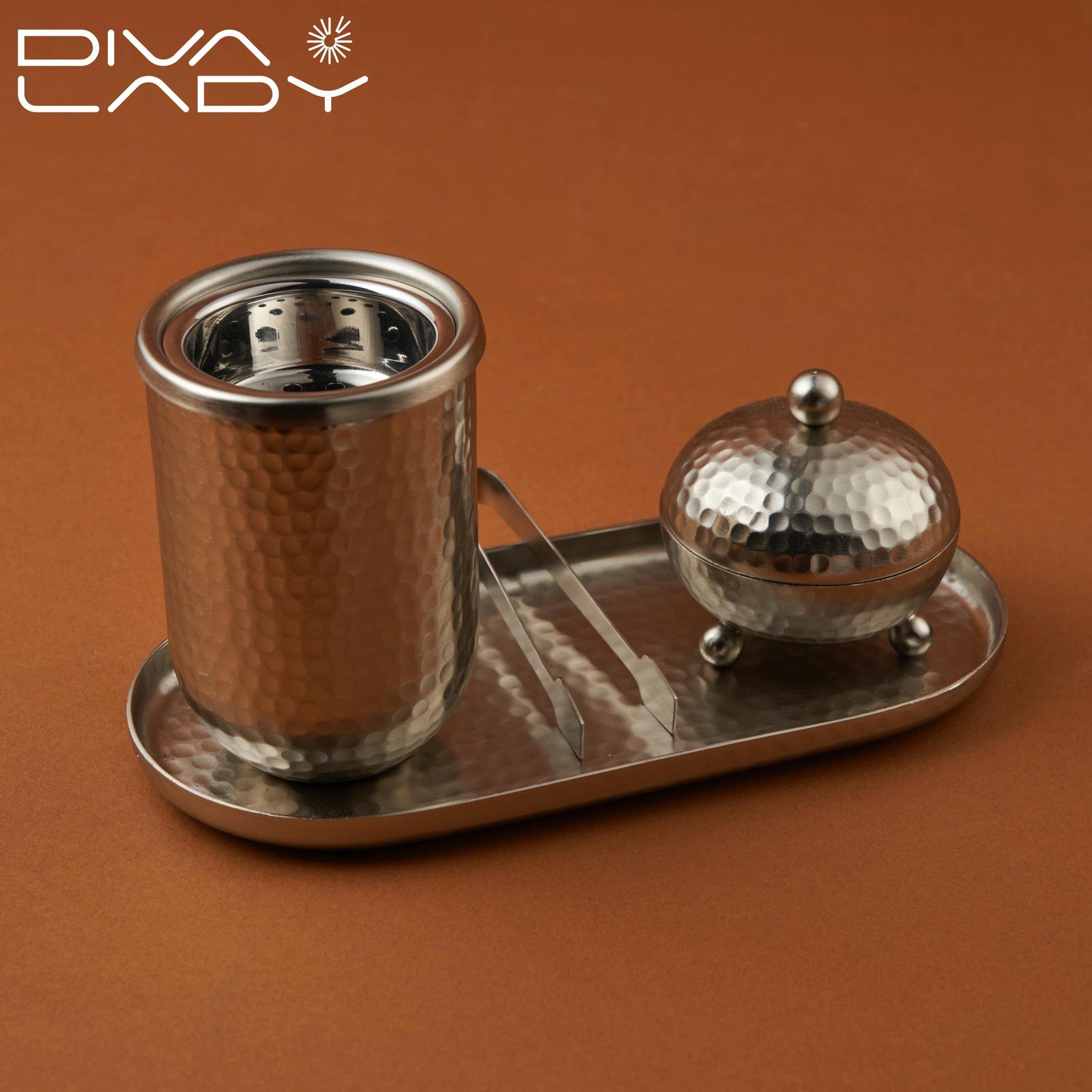 صينية معدنية لوضع المبخرة والوعاء بشكل أنيق