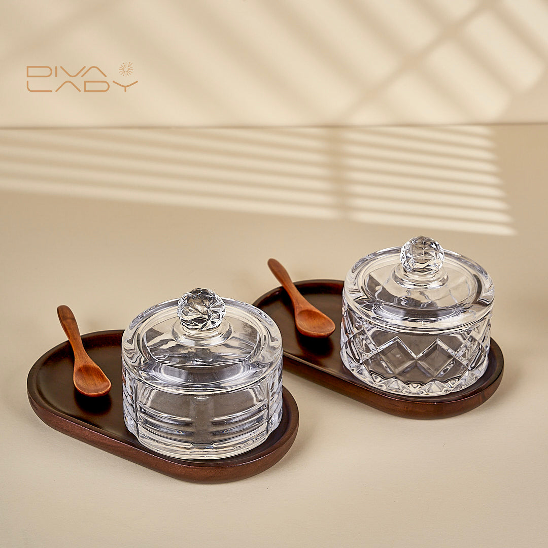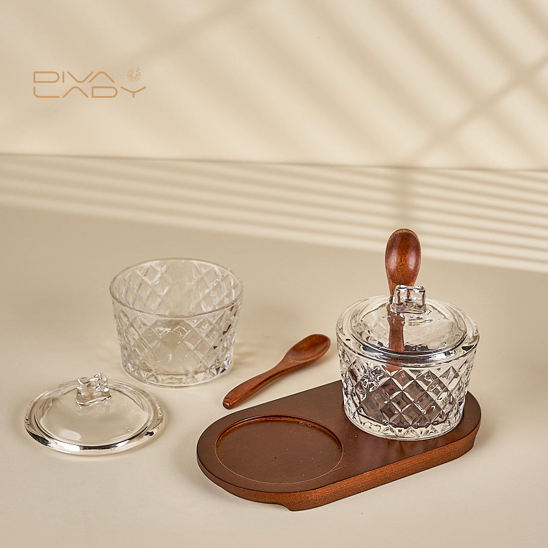طقم سكرية مع صحن خشب