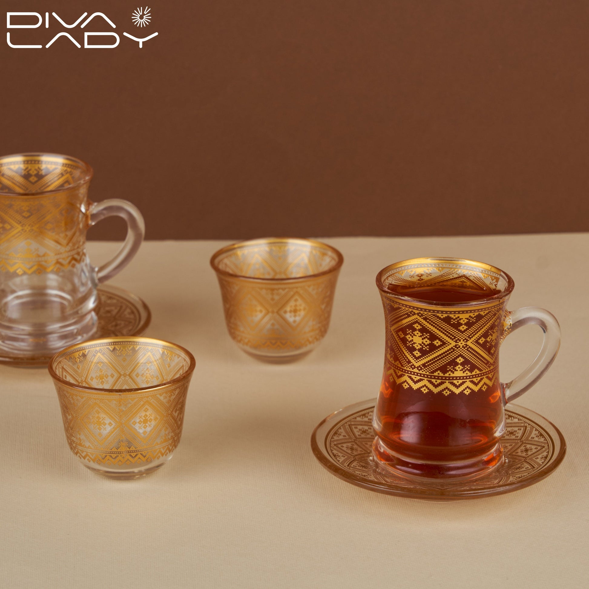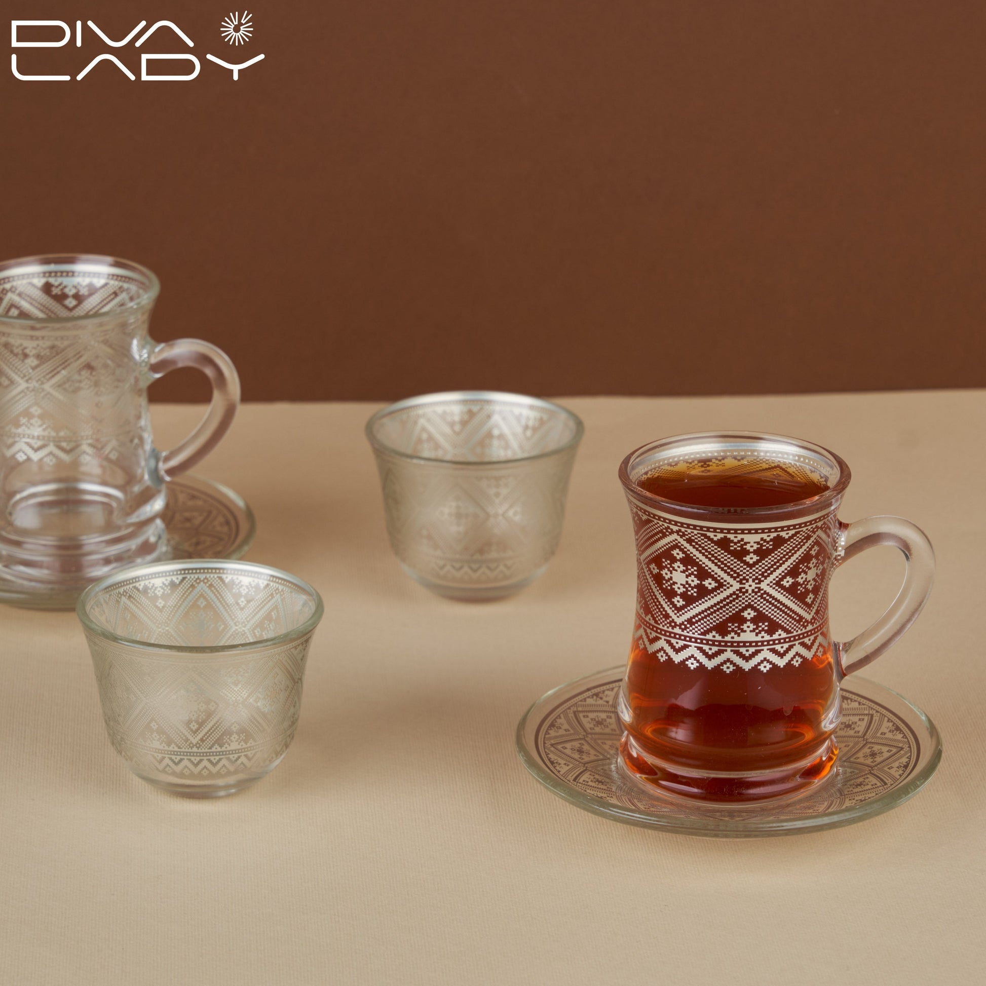 عدد 6 استكانات +6 فناجين قهوة عربية + 6 صحون