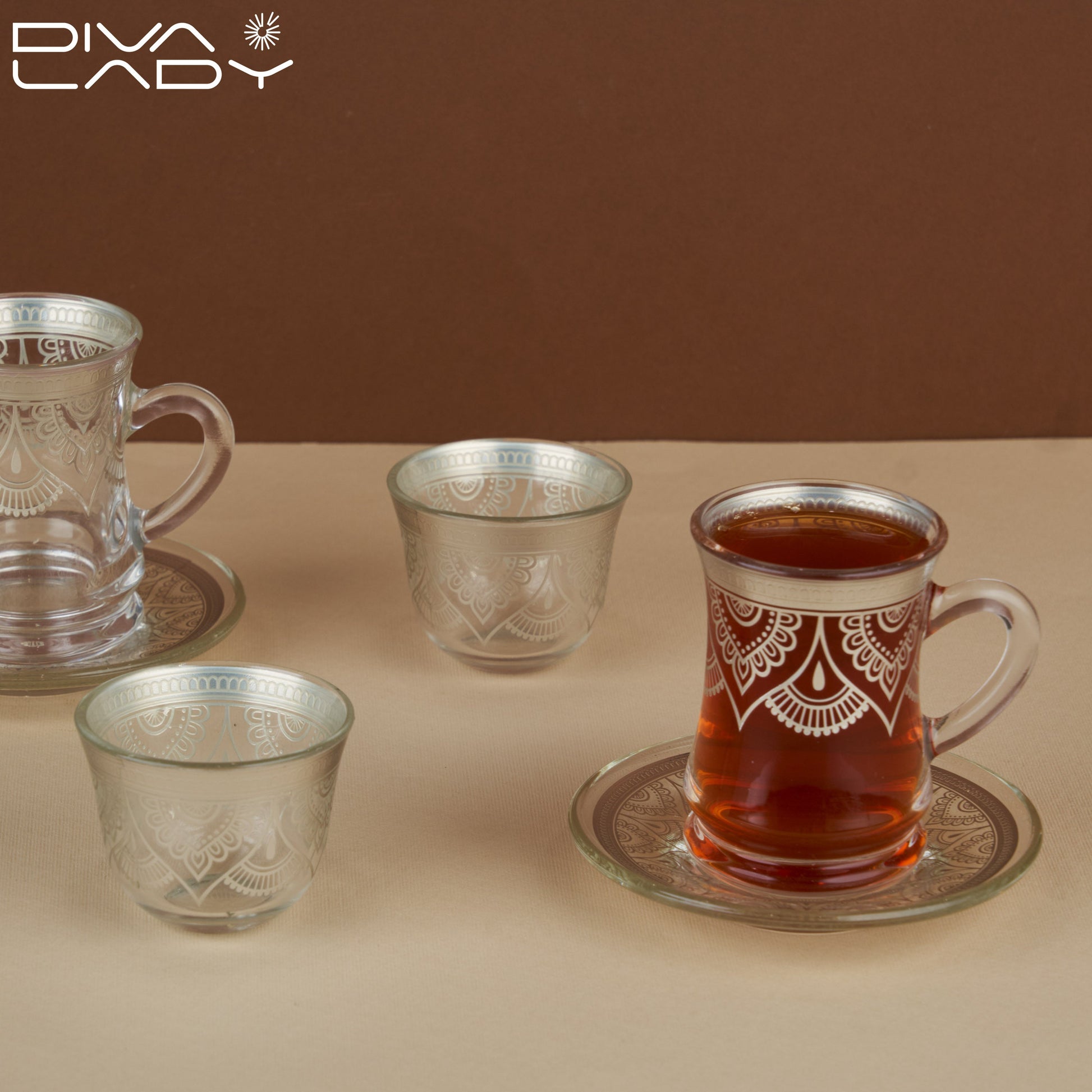 عدد 6 استكانات +6 فناجين قهوة عربية + 6 صحون
