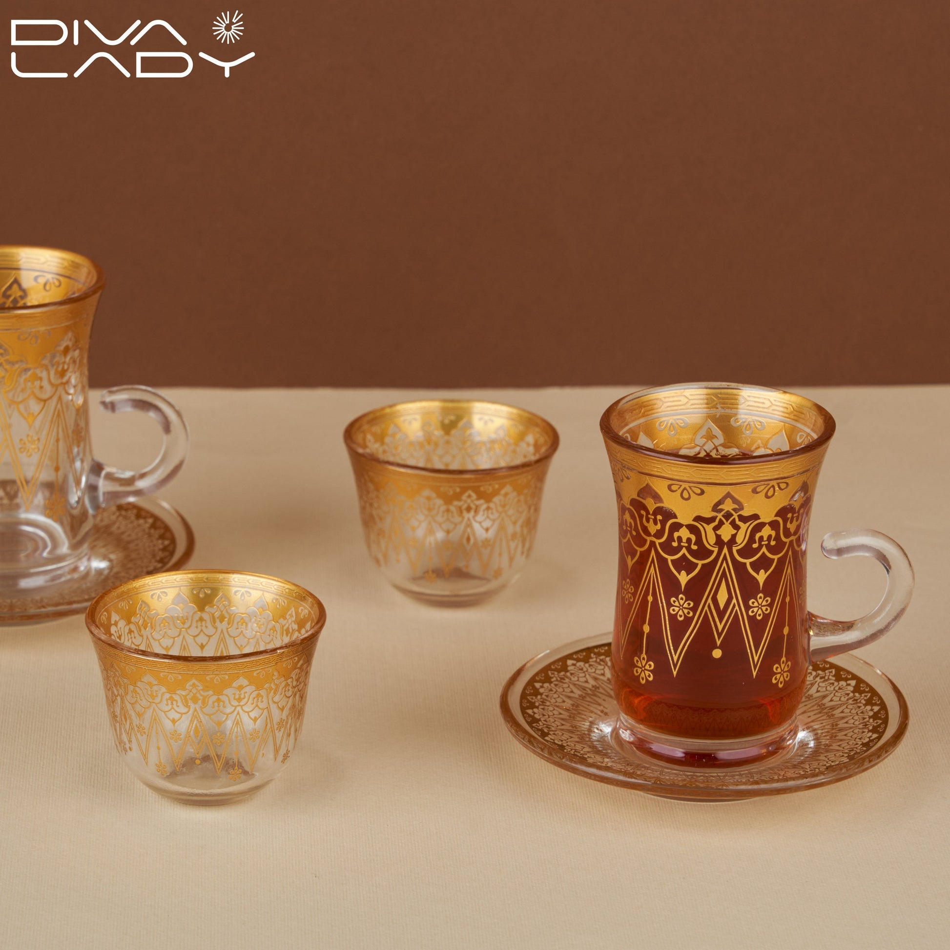 عدد 6 استكانات +6 فناجين قهوة عربية + 6 صحون