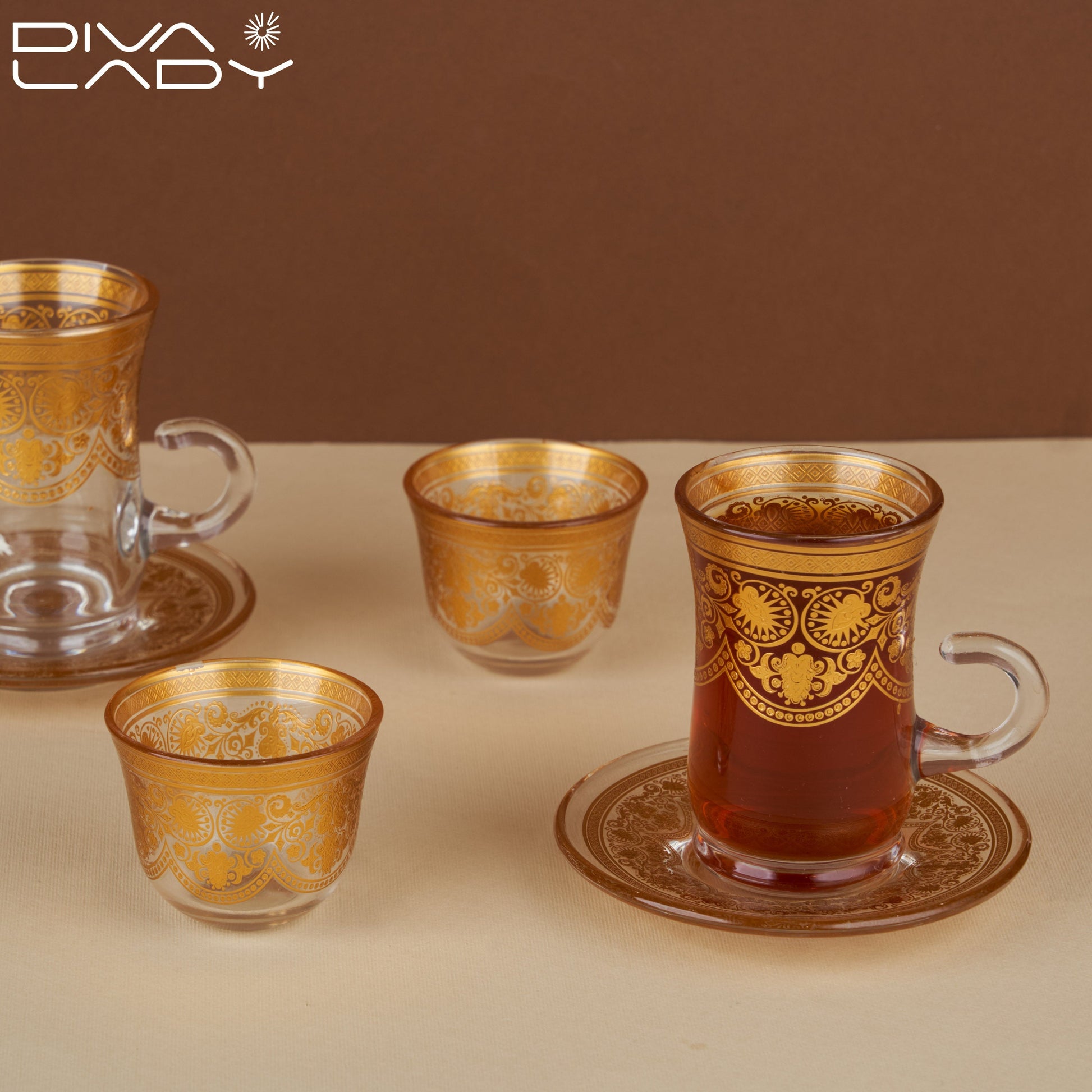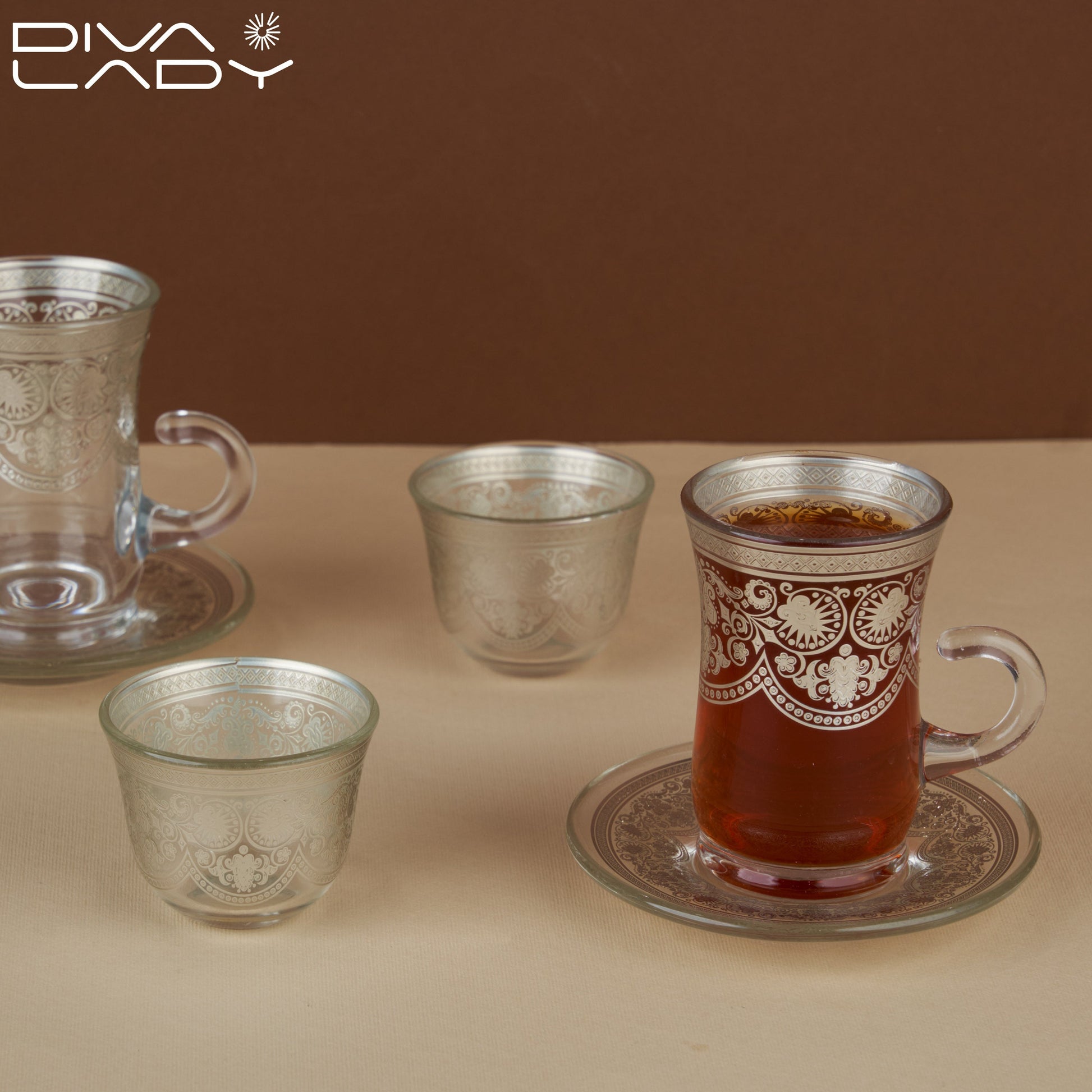 عدد 6 استكانات +6 فناجين قهوة عربية + 6 صحون