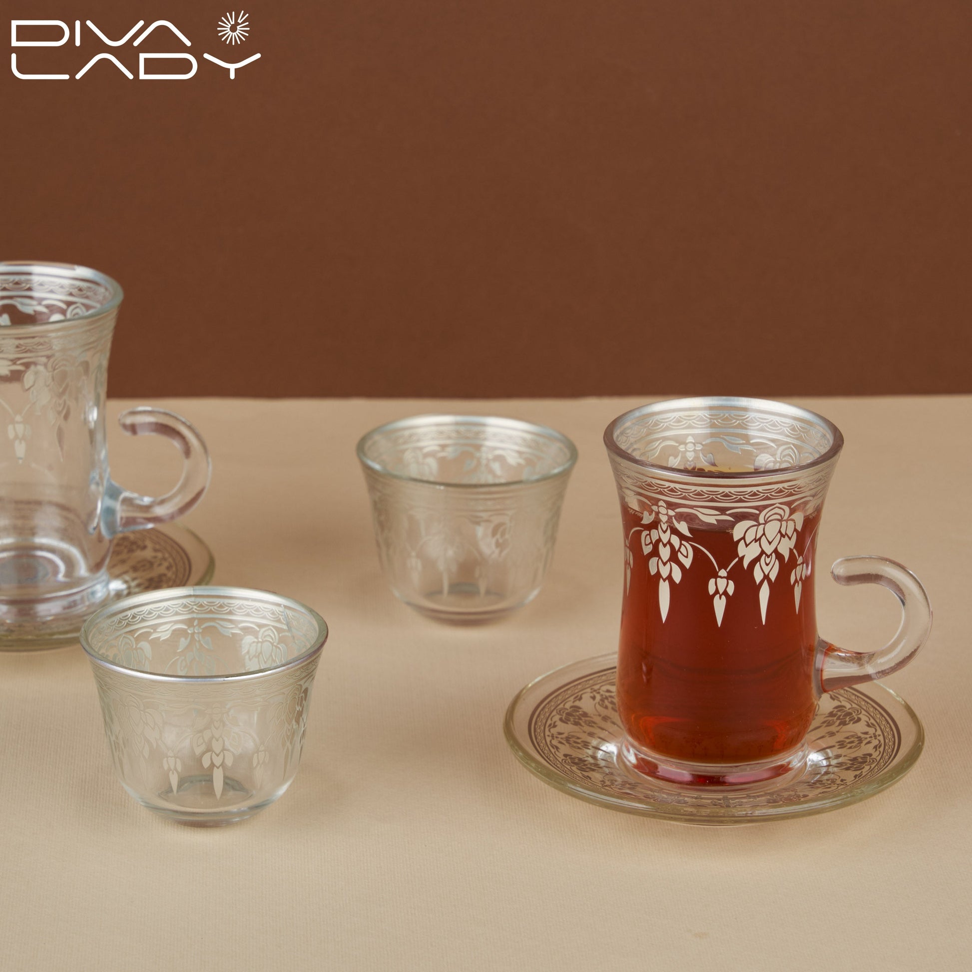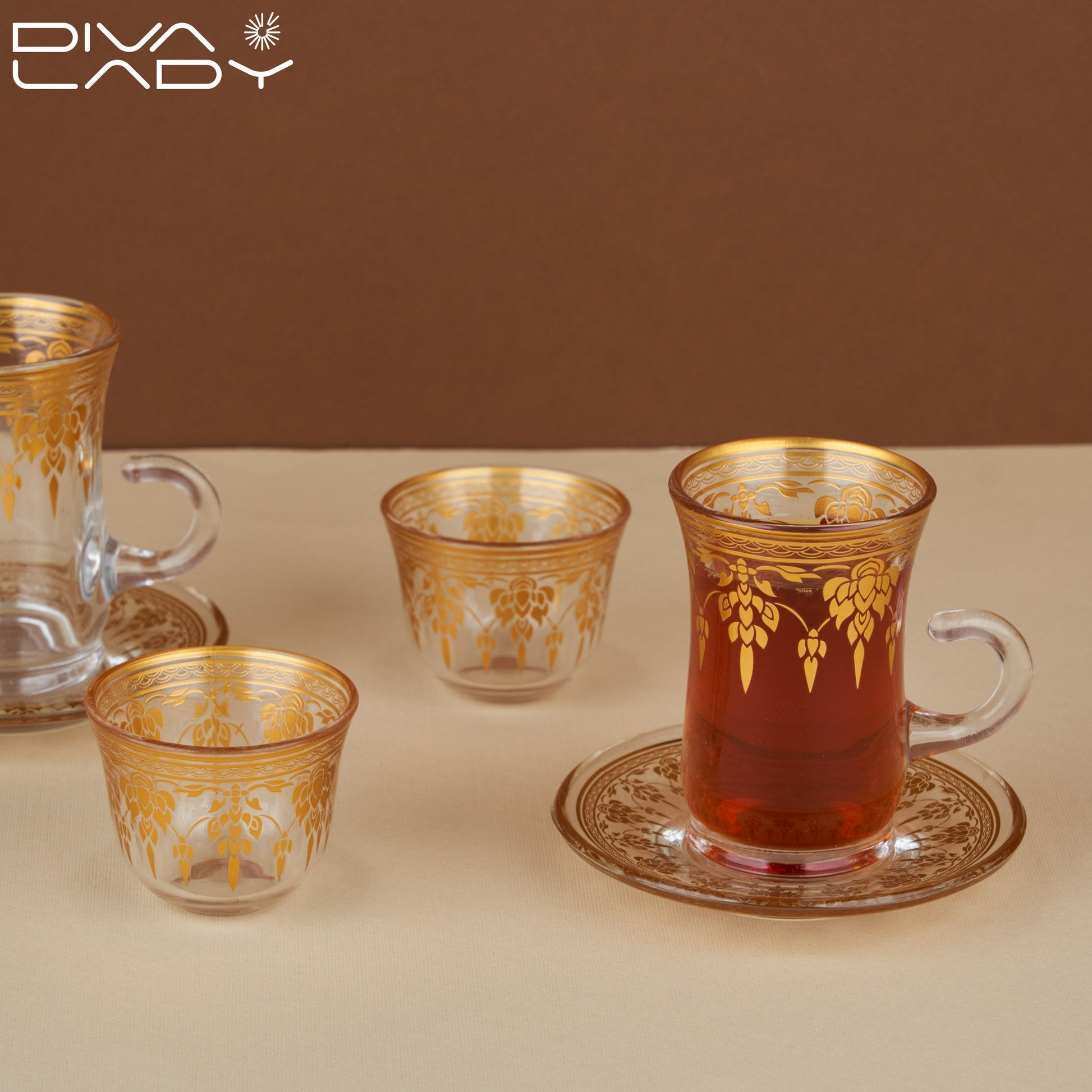 عدد 6 استكانات +6 فناجين قهوة عربية + 6 صحون