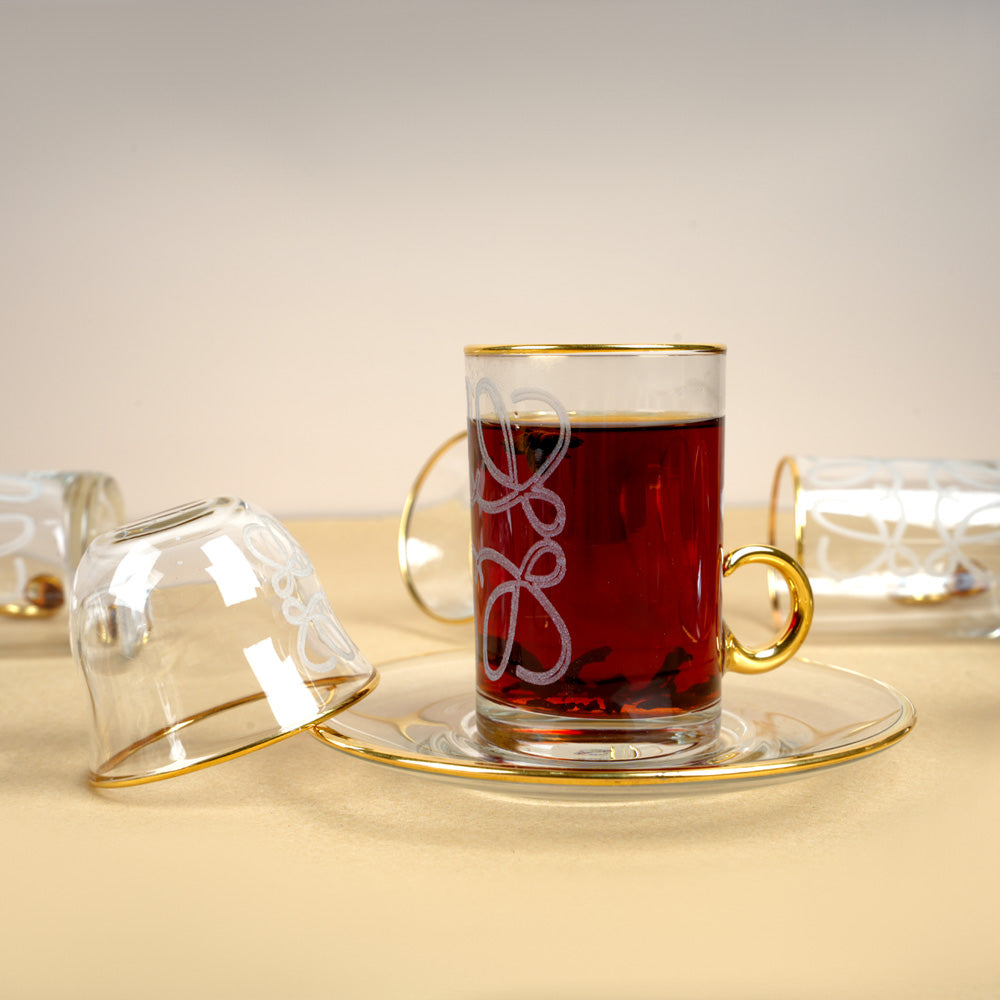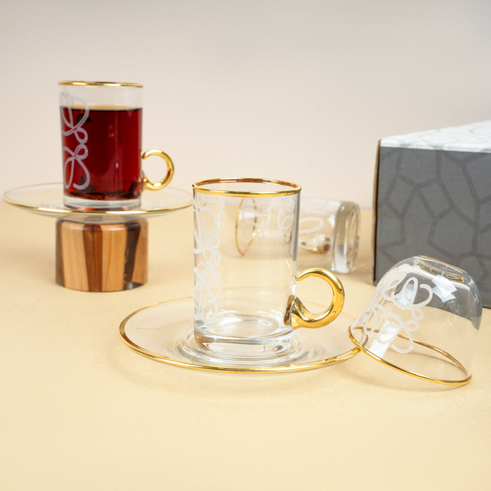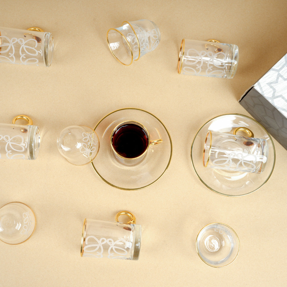 طقم استكانات وفناجين للقهوة مُزيَّنة بتفاصيل دقيقة