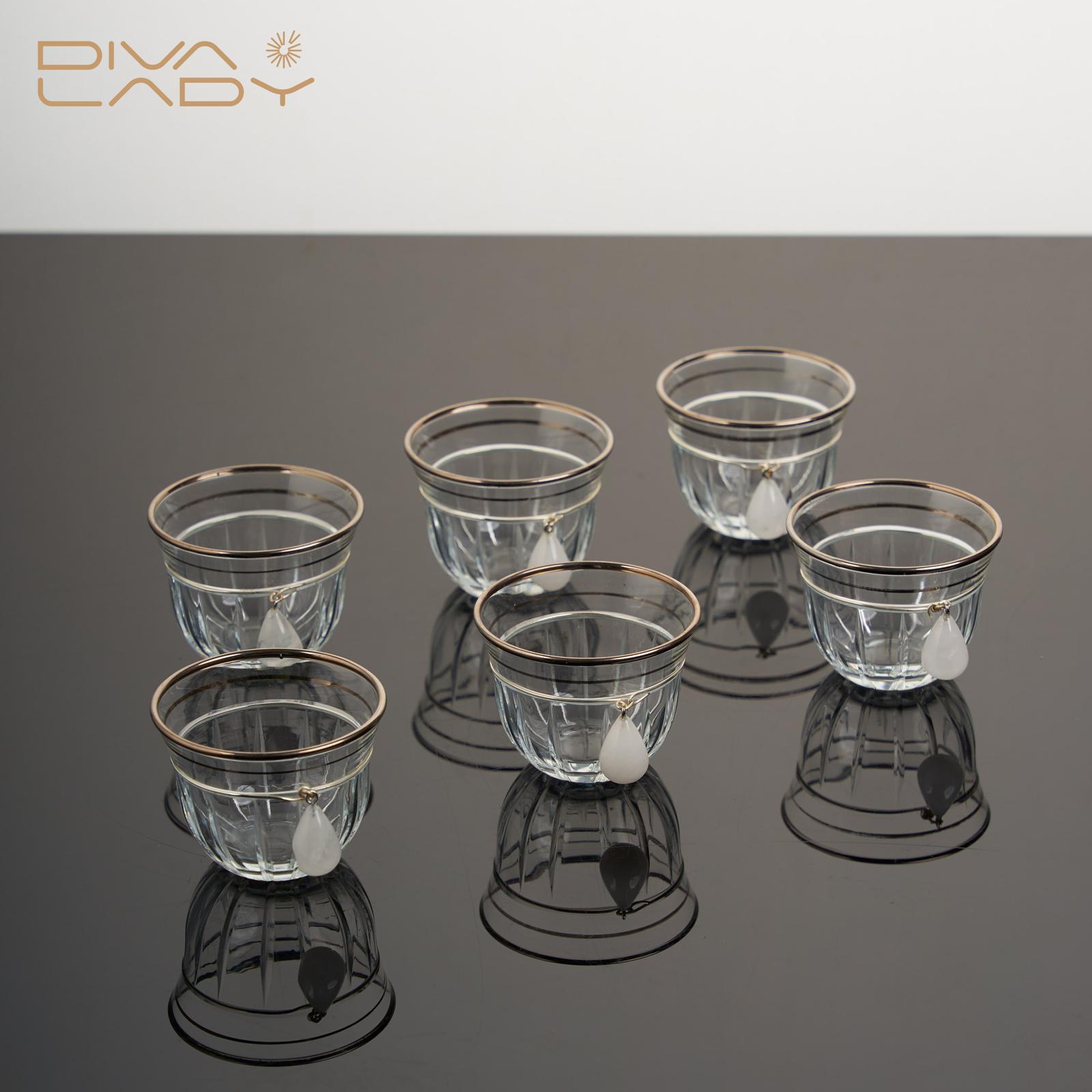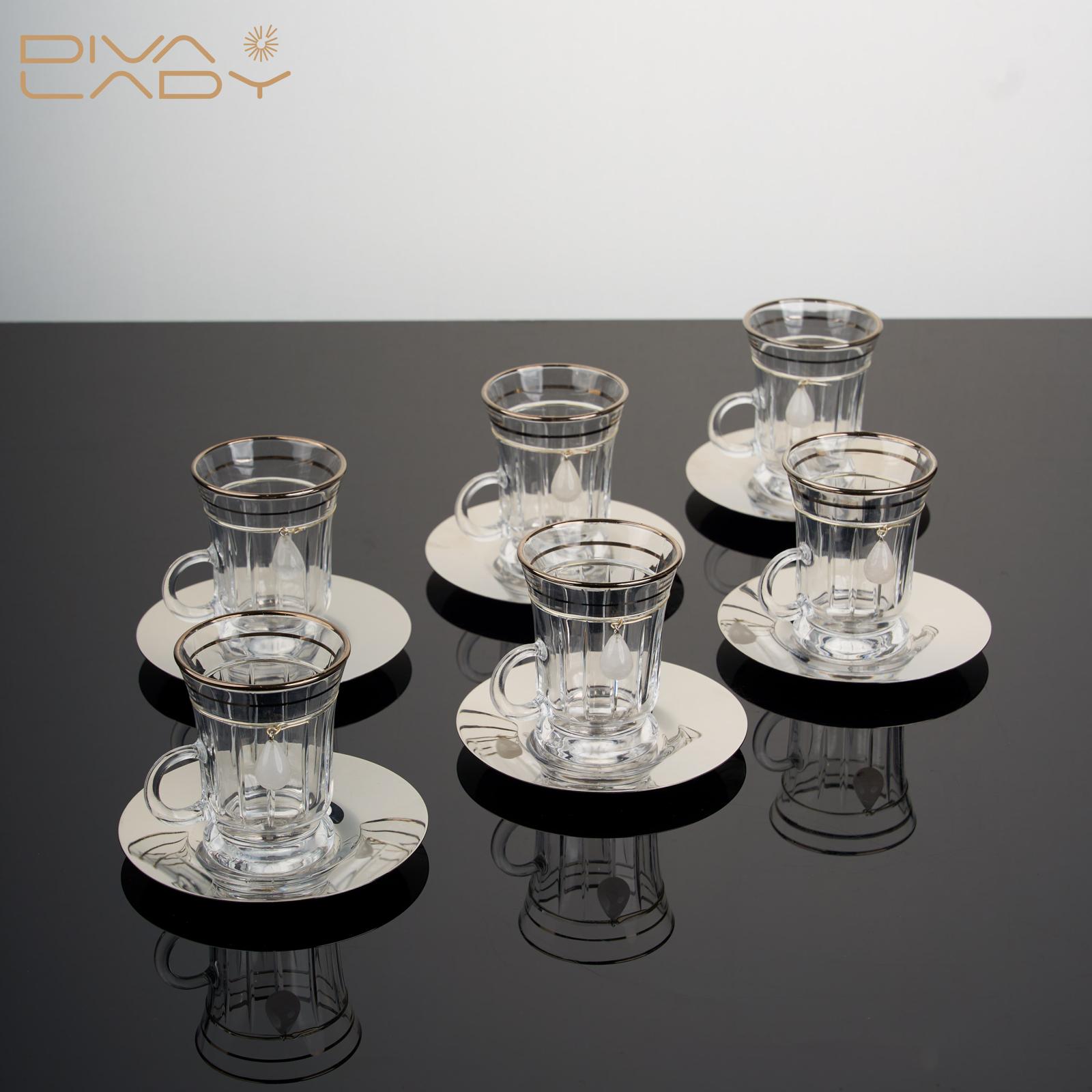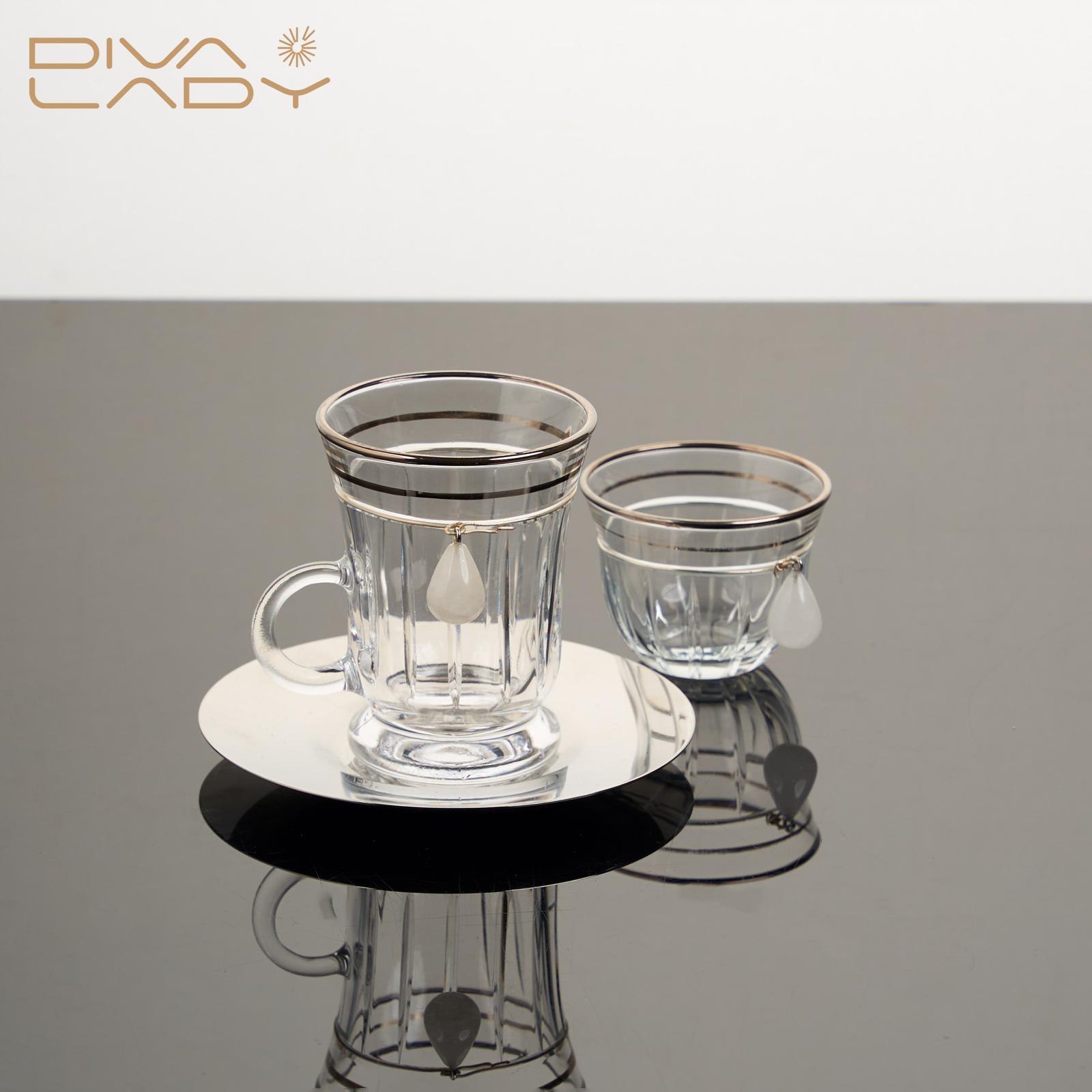 طقم استكانه و فنجان ١٨ قطعة فضى مع كريستال