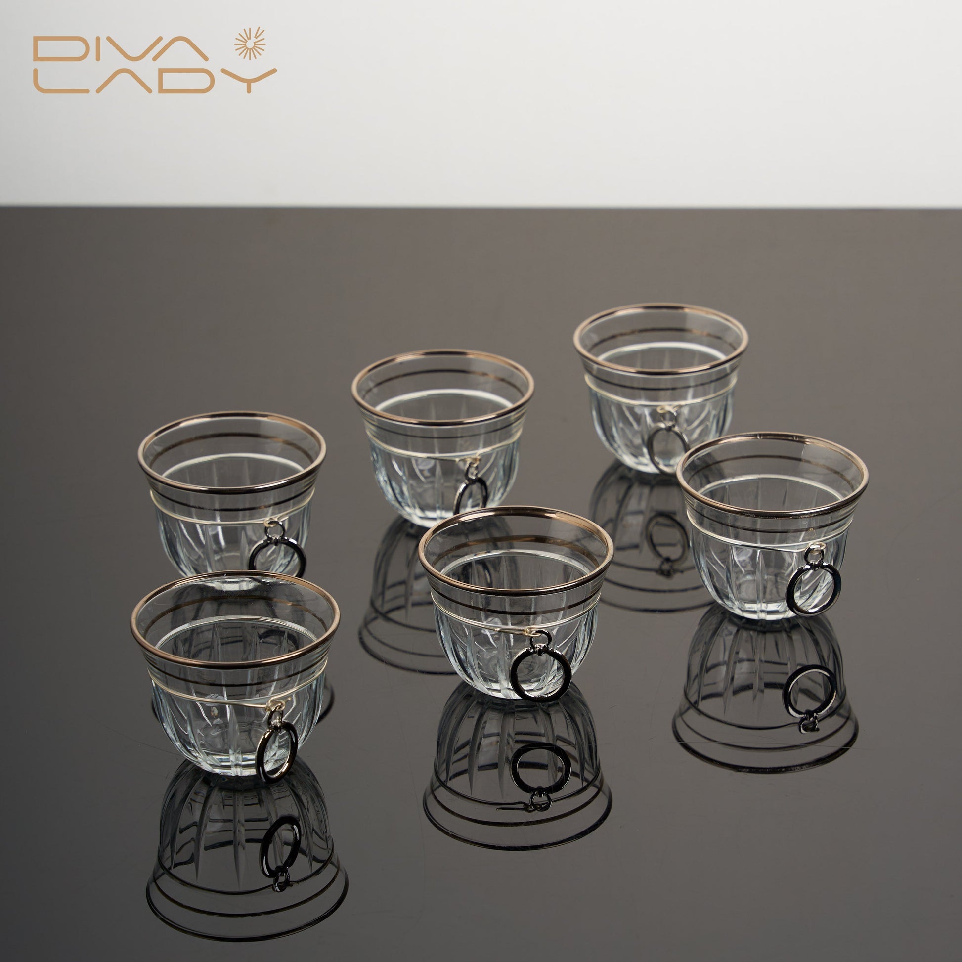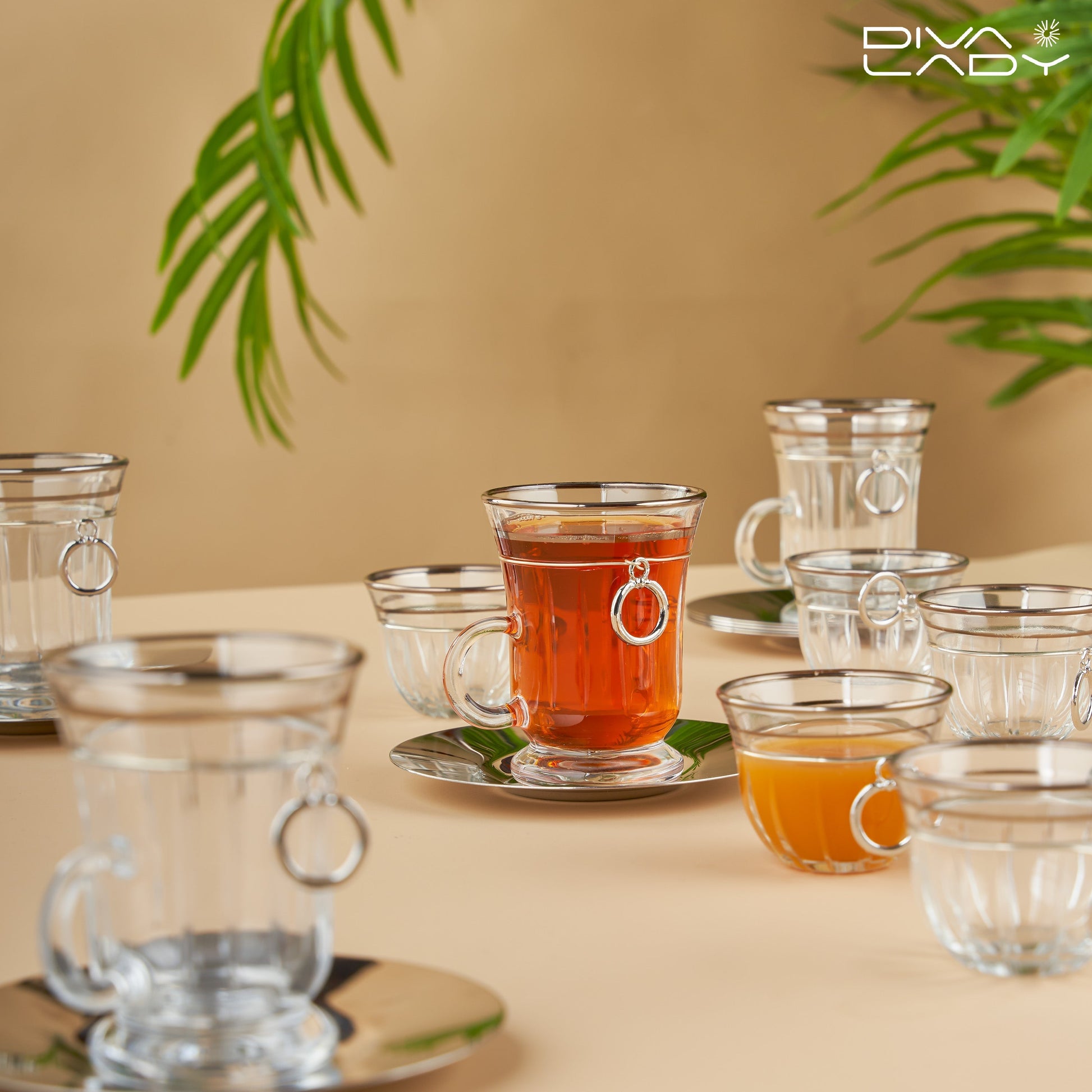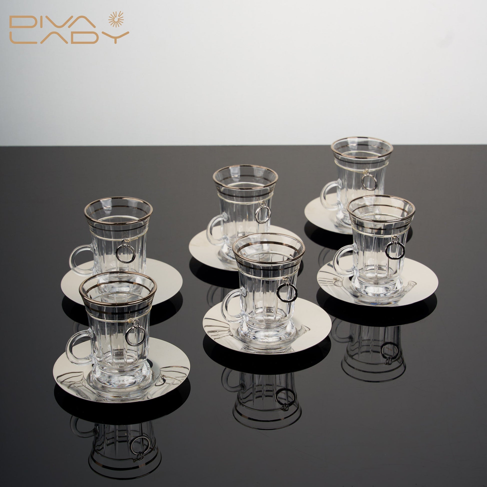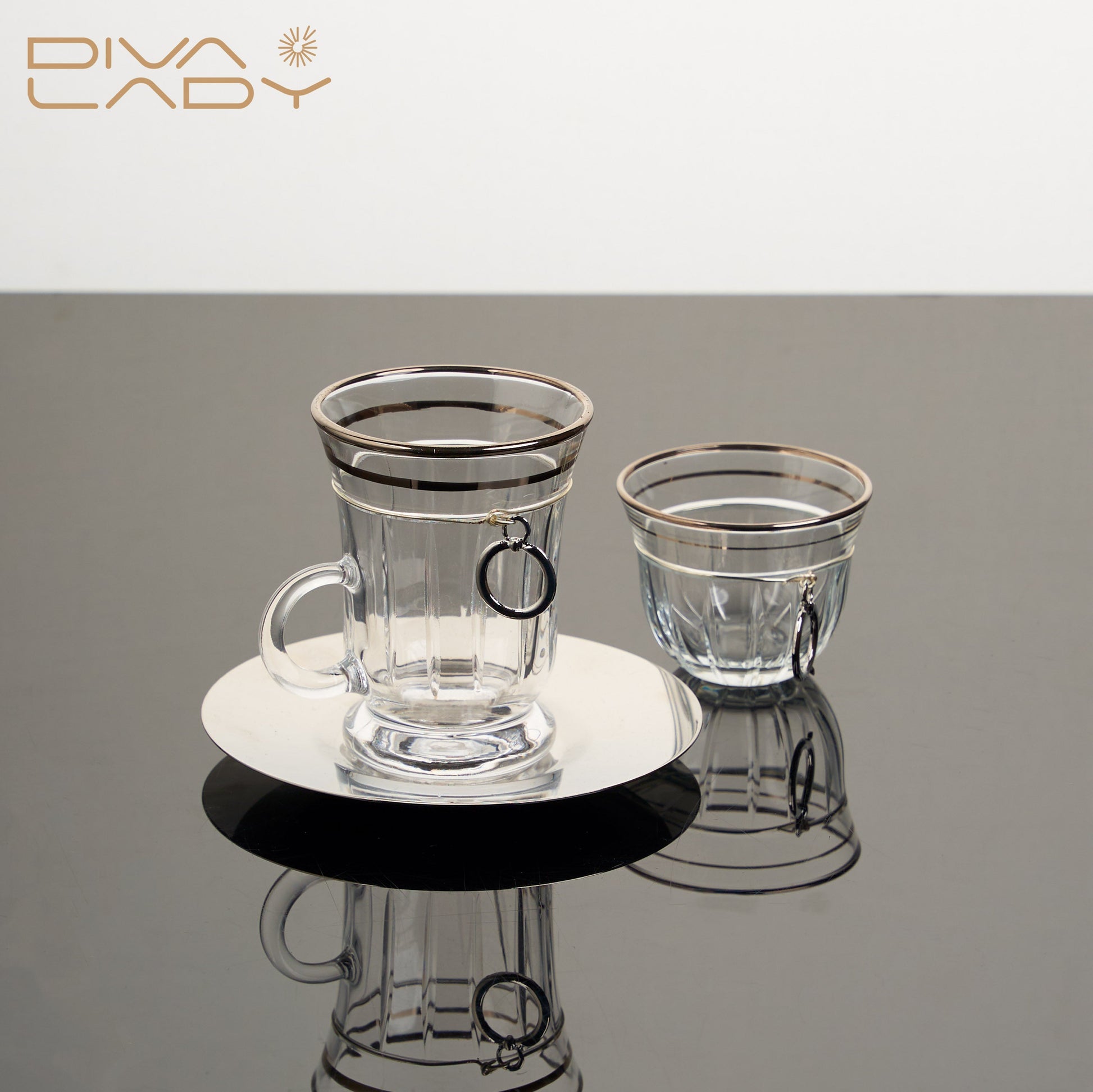 طقم استكانه و فنجان ١٨ قطعة فضي مع حلقة