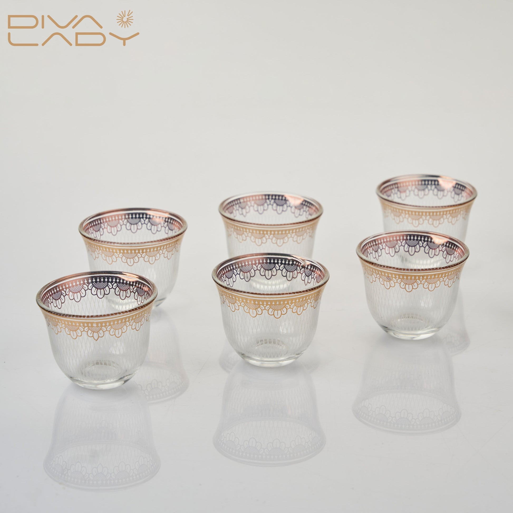 طقم استكانه وفناجين عربية 18 قطعة مُزيَّنة بنقوش ذهبية على الأكواب والصحون تحتوي المجموعة على