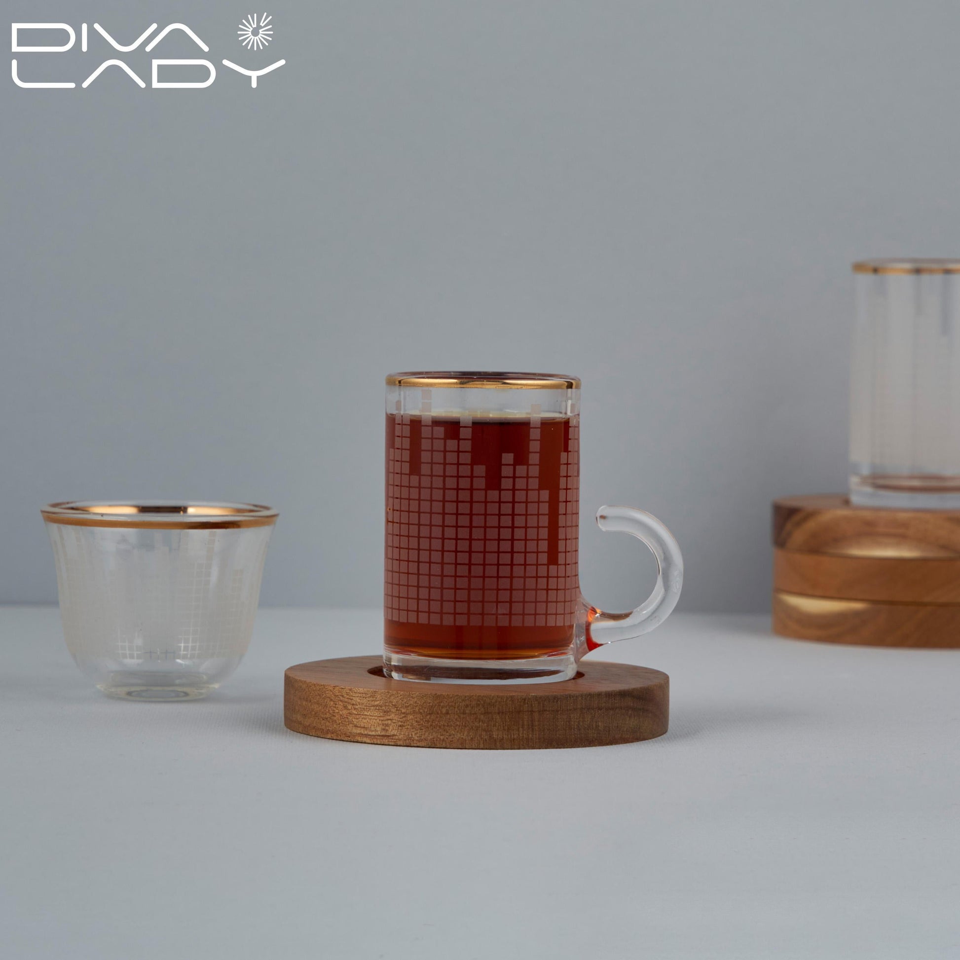 طقم استكانات وفناجين للقهوة مُزيَّنة بتفاصيل دقيقة
