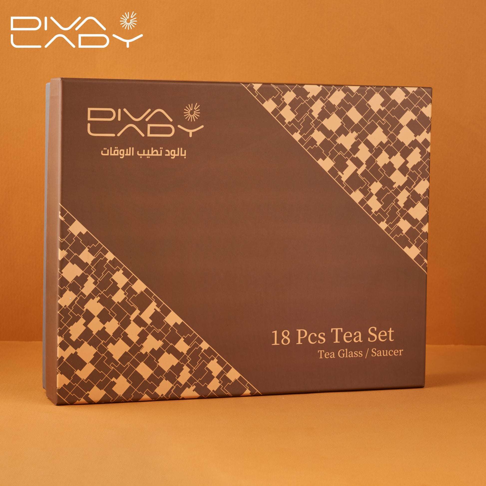 طقم استكانات وفناجين للقهوة مُزيَّنة بتفاصيل دقيقة