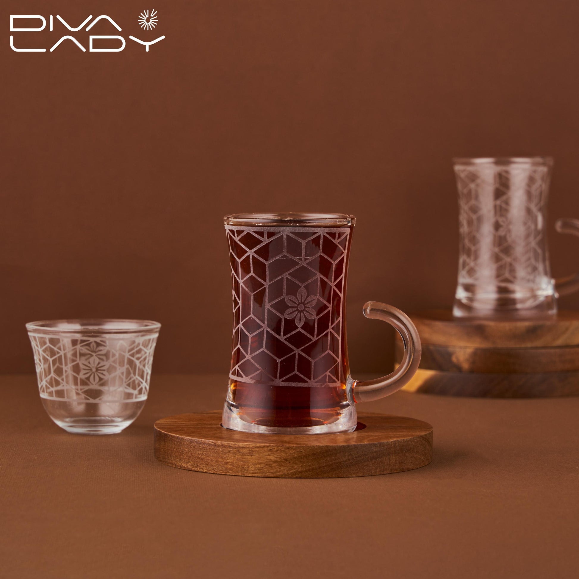 طقم استكانات وفناجين للقهوة مُزيَّنة بتفاصيل دقيقة