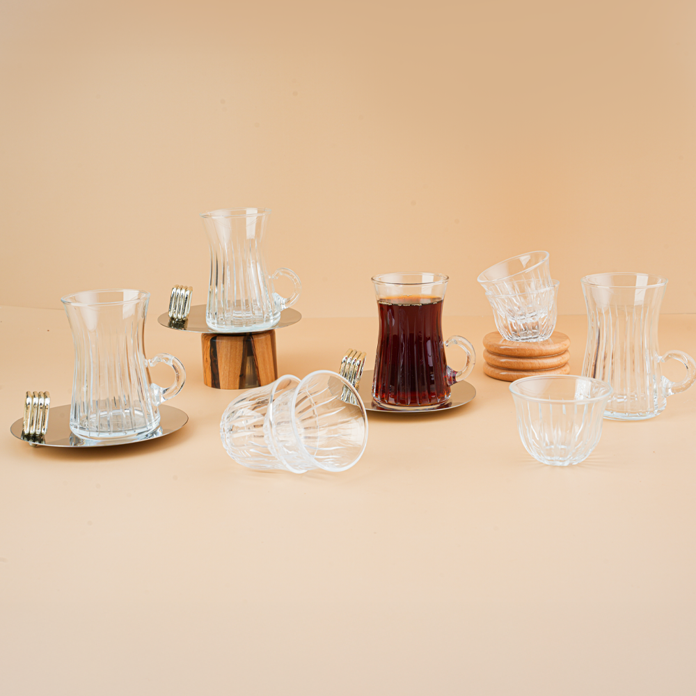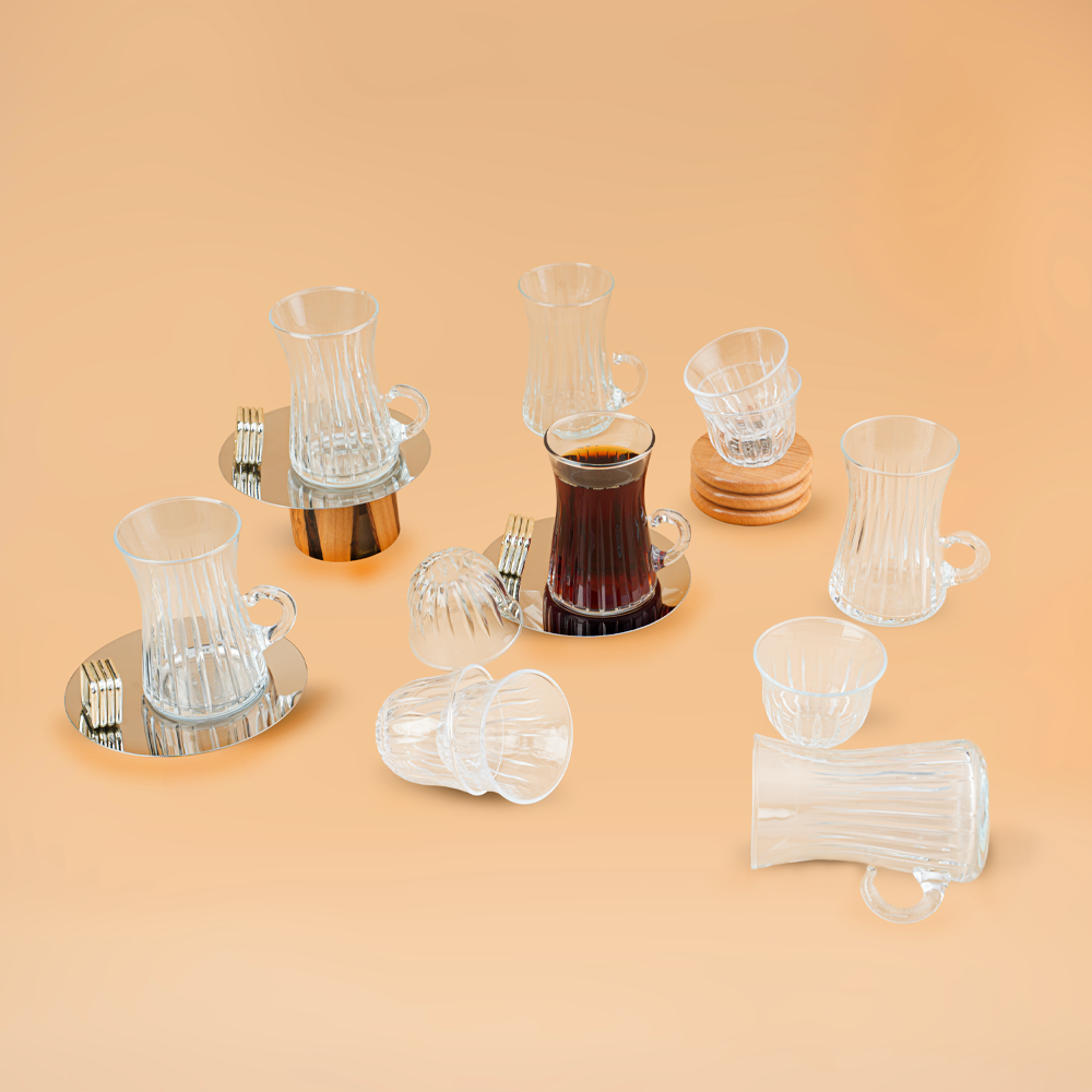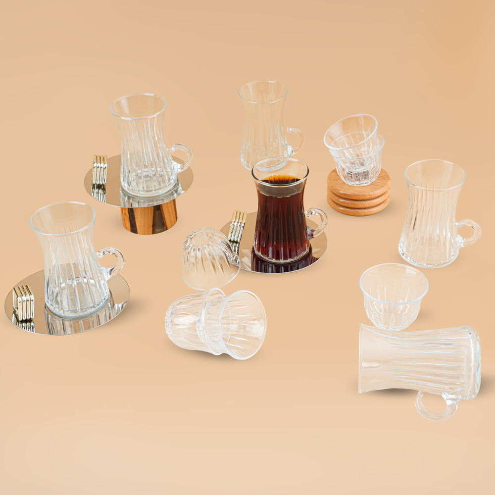 طقم استكانات وفناجين للقهوة والشاى مُزيَّنة بتفاصيل دقيقة
