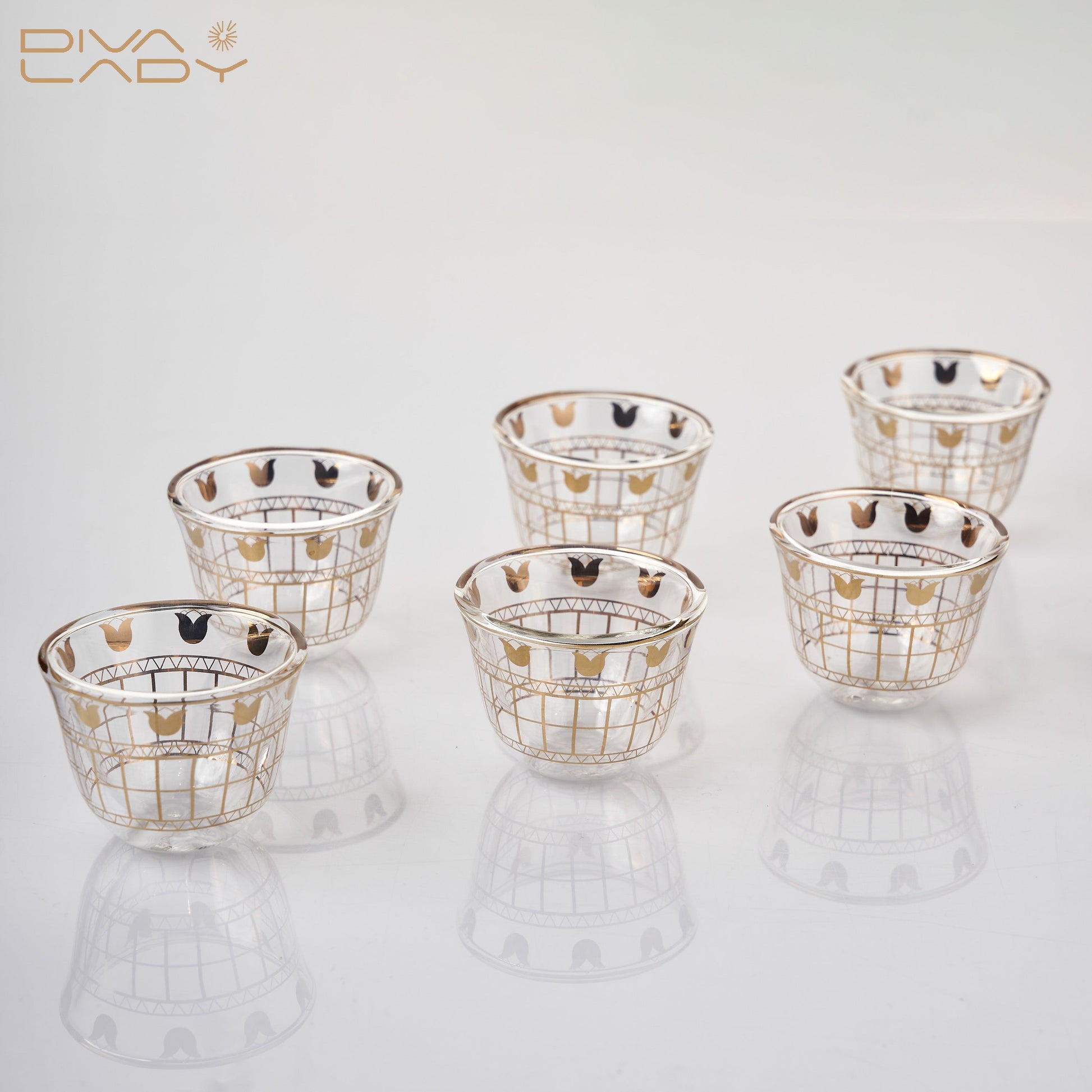 طقم استكانه وفناجين عربية 18 قطعة مُزيَّنة بنقوش ذهبية على الأكواب