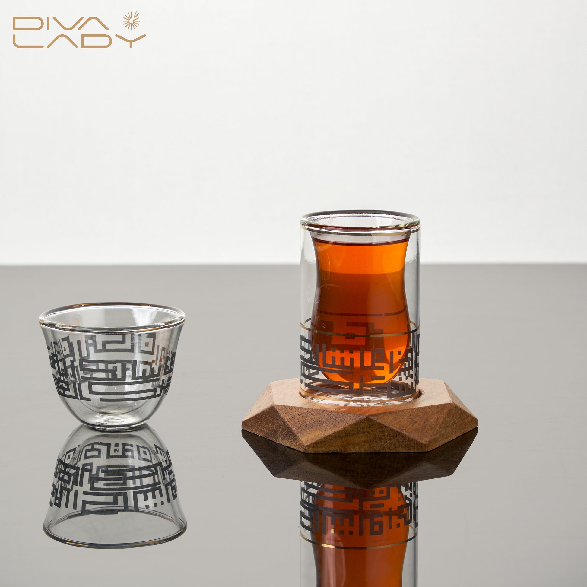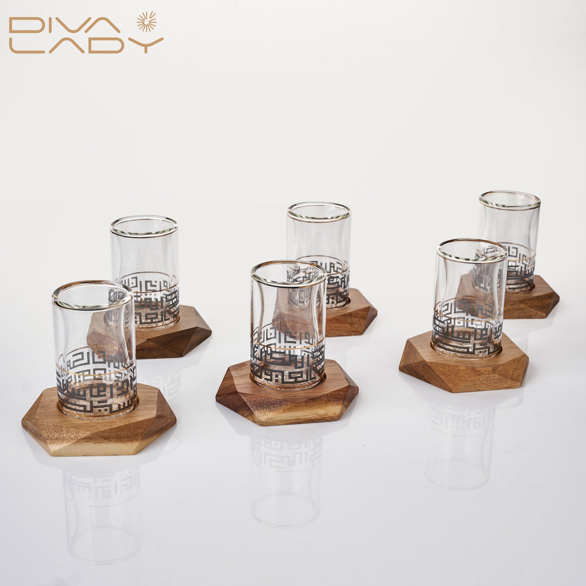 عدد 6 استكانات +6 فناجين قهوة عربية + 6 صحون خشبية