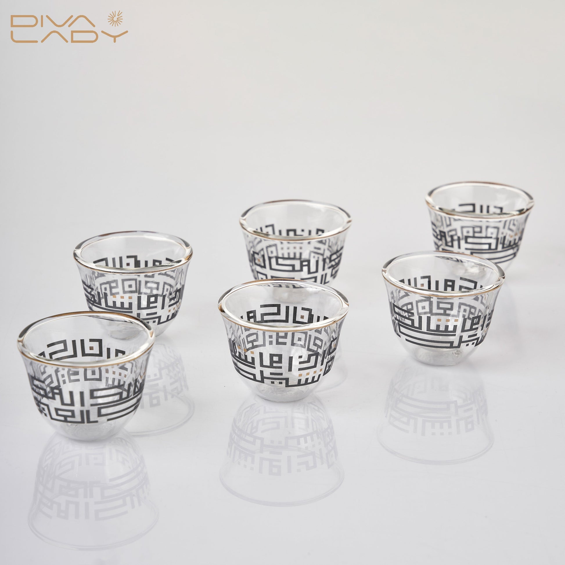 طقم استكانه وفناجين عربية 18 قطعة مُزيَّنة بنقوش على الأكواب