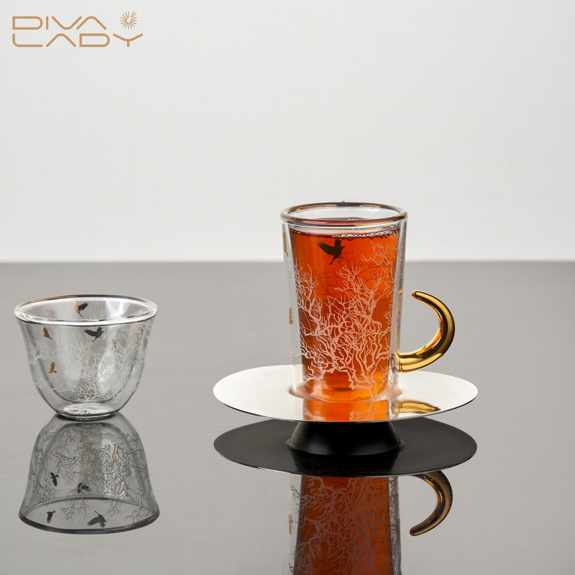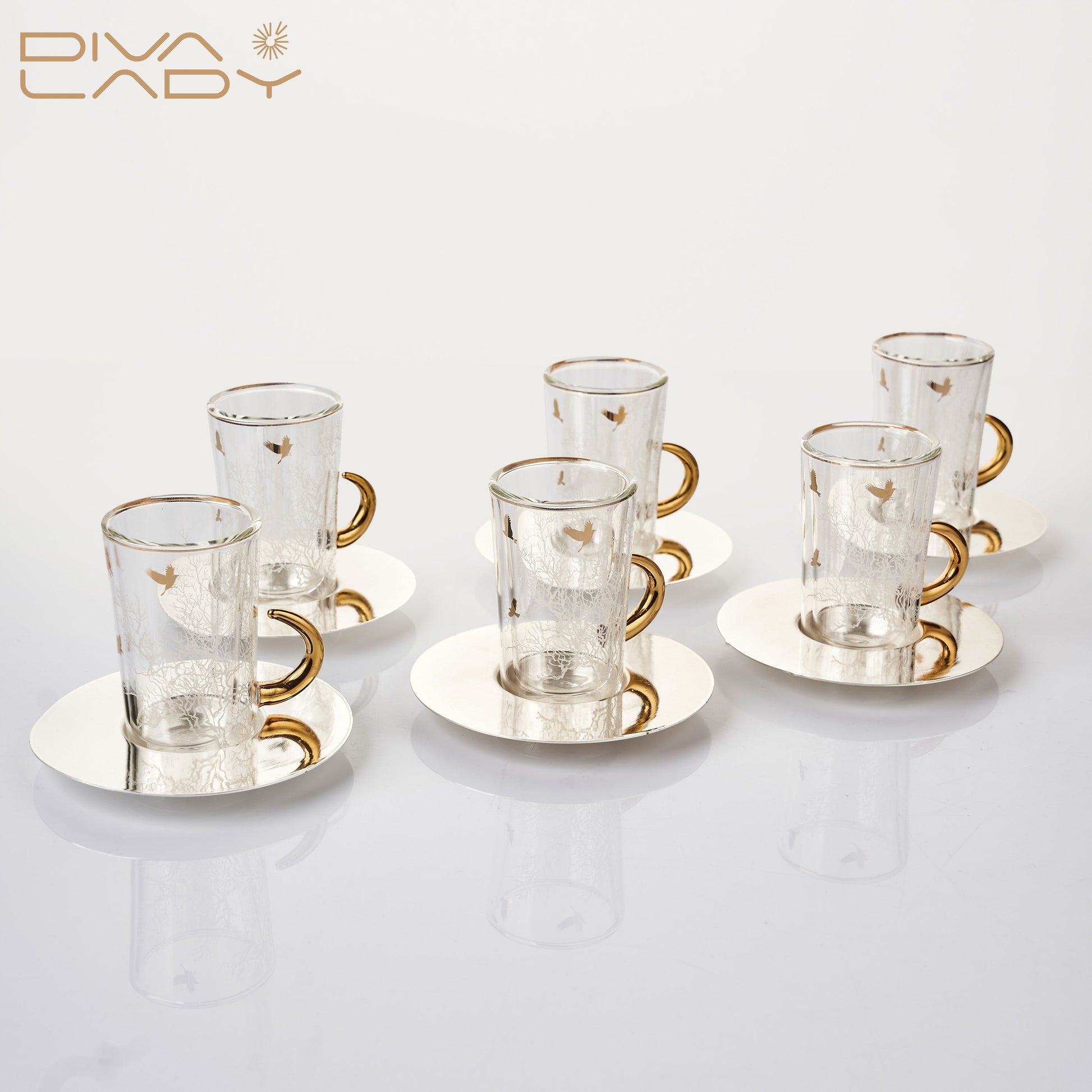 عدد 6 استكانات +6 فناجين قهوة عربية + 6 صحون استيل