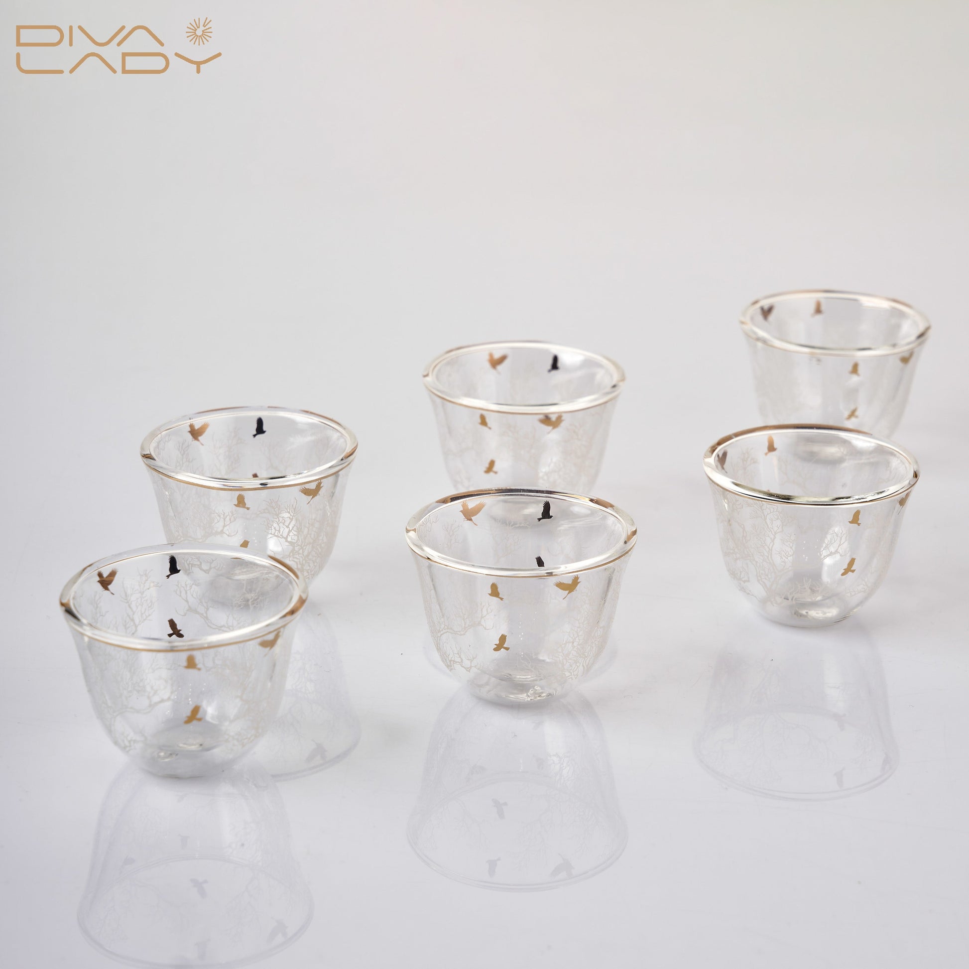 طقم استكانه وفناجين عربية 18 قطعة مُزيَّنة بنقوش على الأكواب