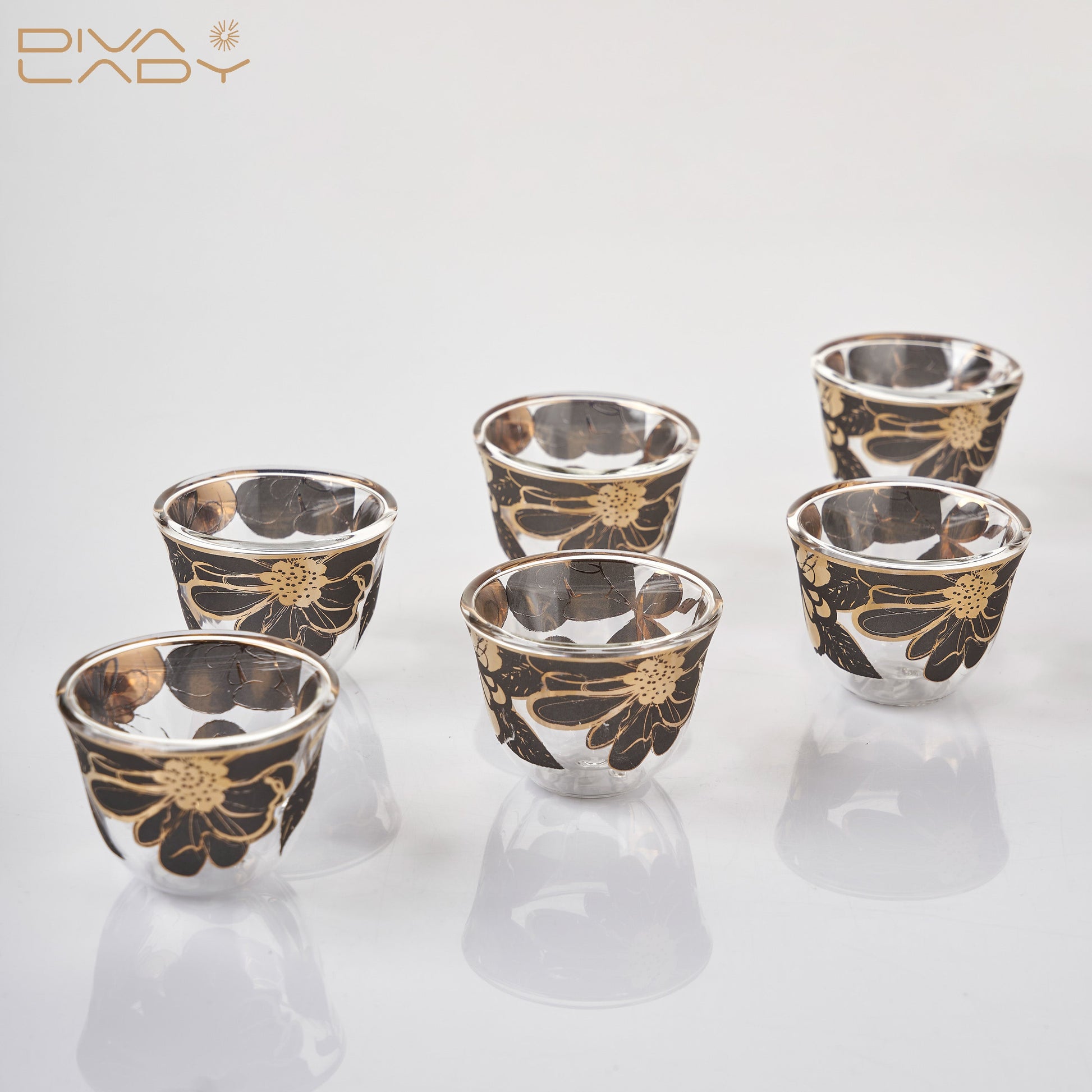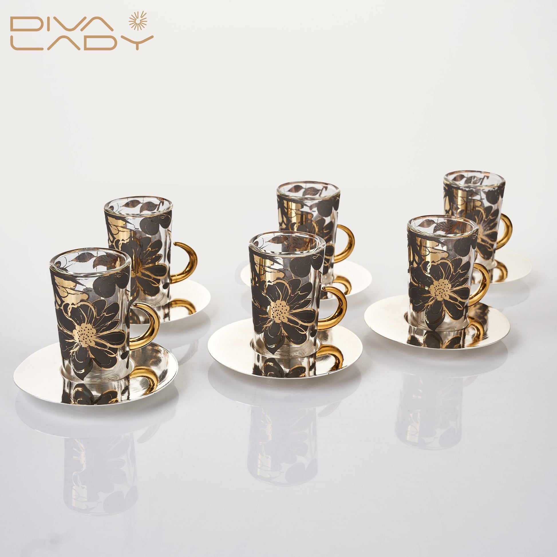 عدد 6 استكانات +6 فناجين قهوة عربية + 6 صحون استيل