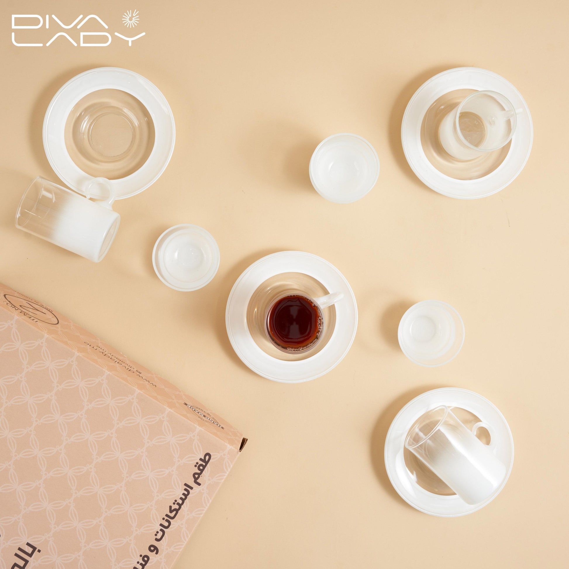 طقم ضيافة فاخر 18 قطعة – استكانات شاي وفناجين قهوة مع صحون أنيقة