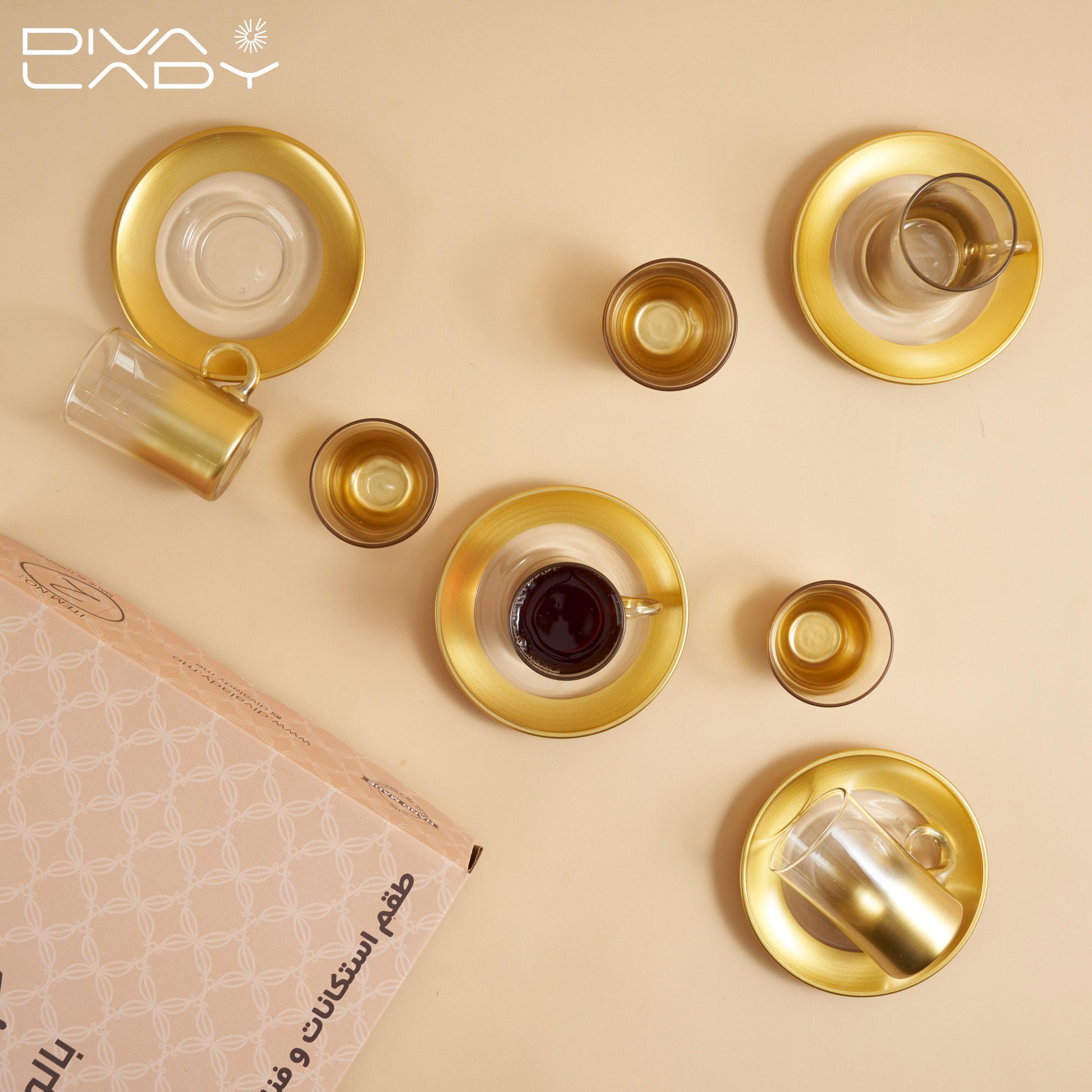 طقم استكانه وفناجين قهوة ذهبى- 18 حبة