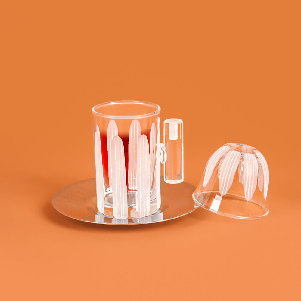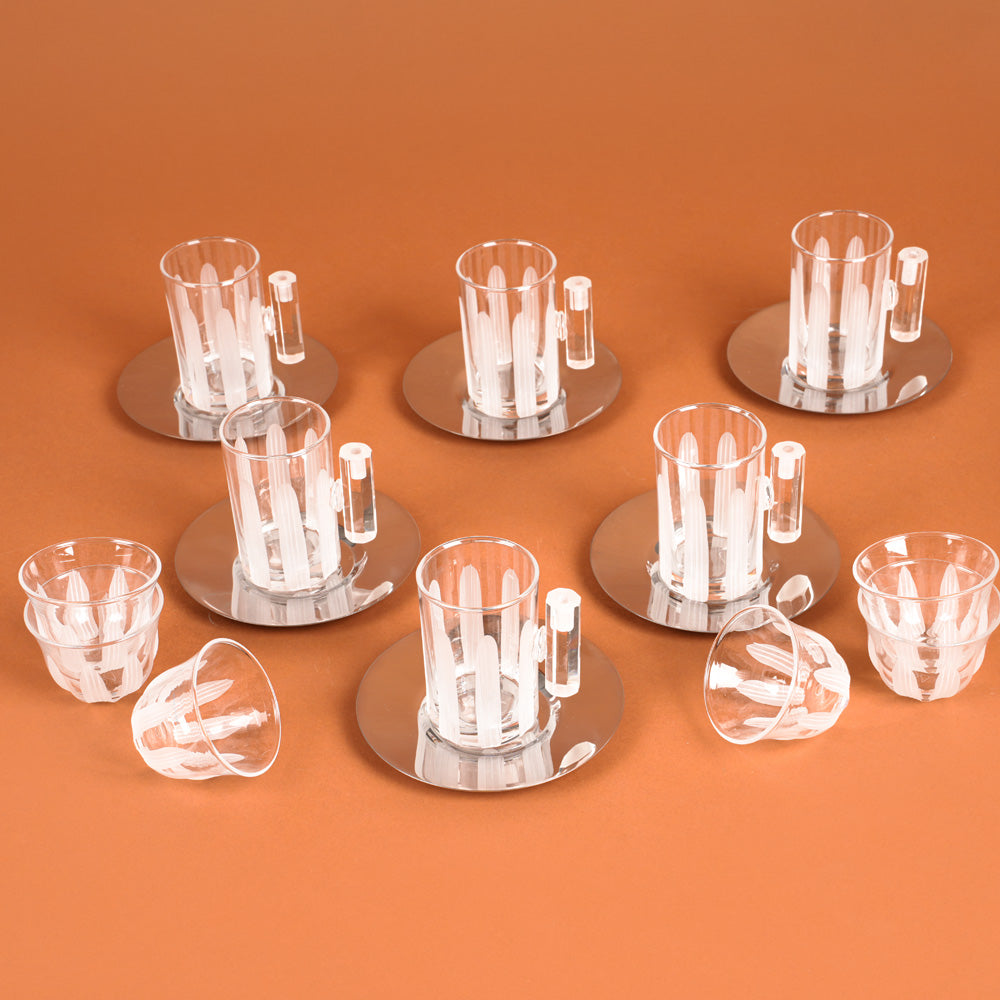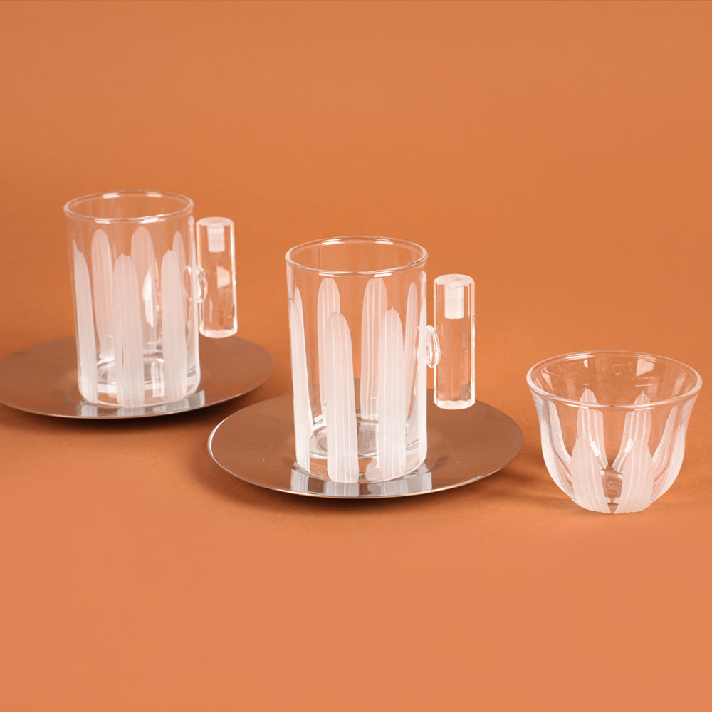 طقم استكانات وفناجين للقهوة والشاى مُزيَّنة بتفاصيل دقيقة