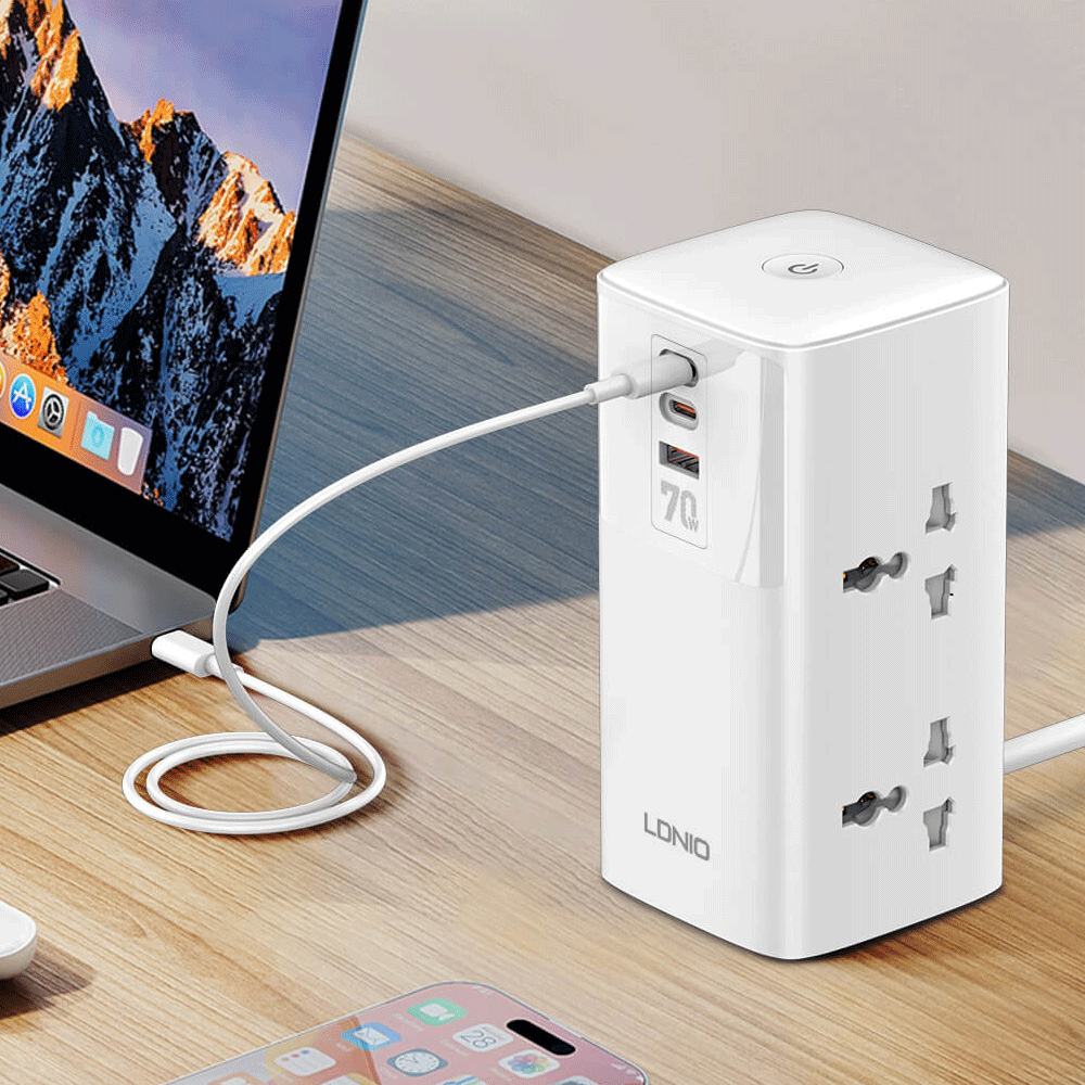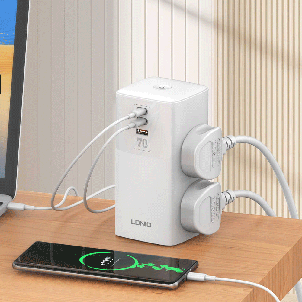 2 منفذ USB-C و1 منفذ USB-A، شحن سريع مباشر بقوة 70 وات، لا حاجة لشراء شاحن.
