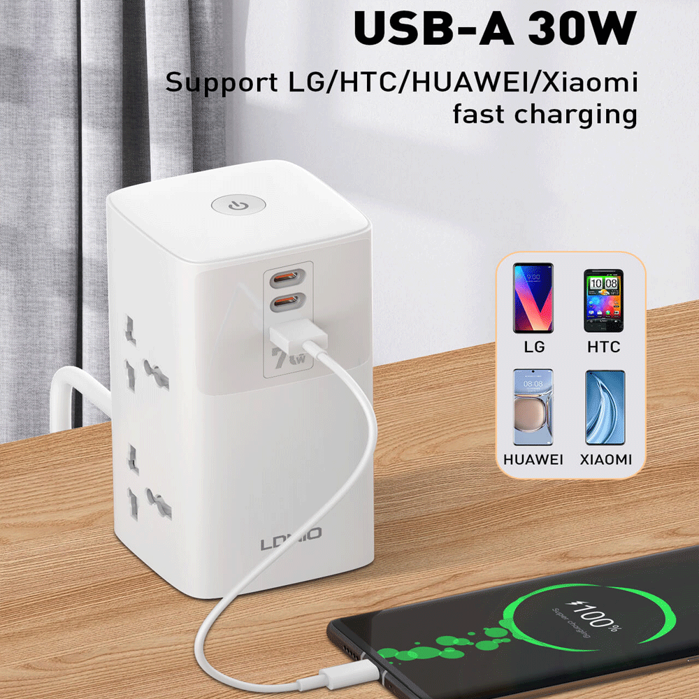 يدعم منفذ USB معظم أنواع الهواتف (مع مخرج PD/QC3.0).