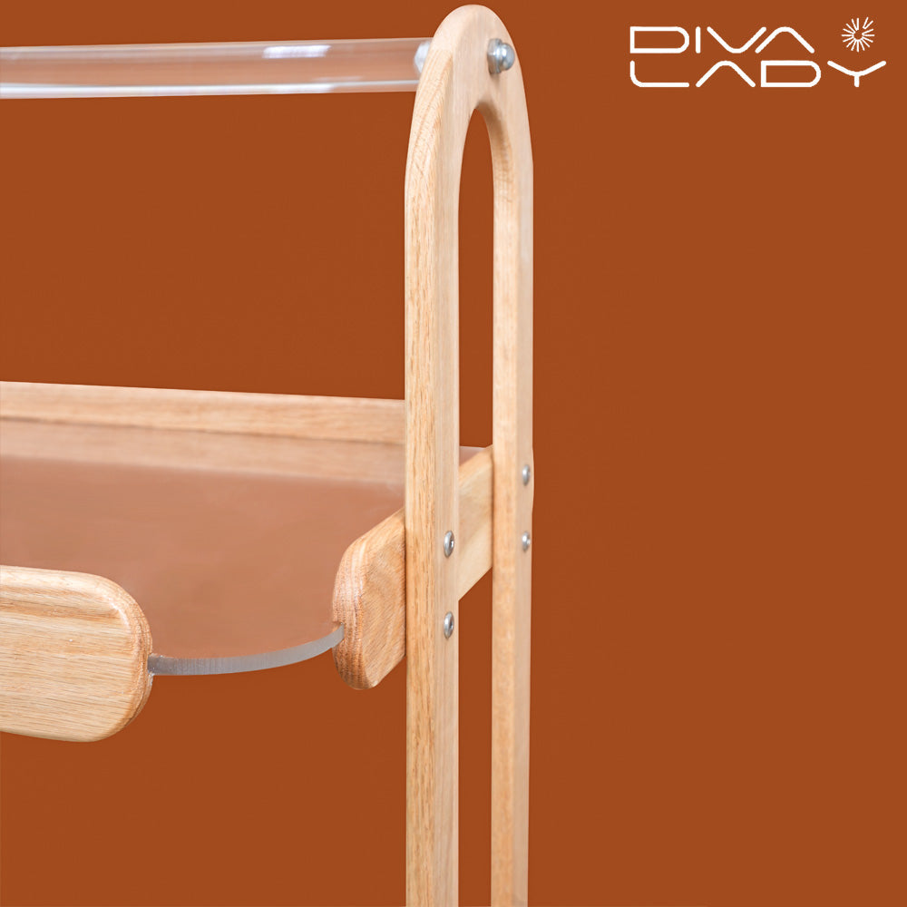 * ثلاثة أرفف واسعة: يوفر ثلاثة أرفف واسعة مساحة كافية لتخزين وتنظيم مجموعة متنوعة من الأغراض، مثل أدوات المائدة، الأطباق، المشروبات، الكتب، النباتات، أو أي شيء آخر ترغب في عرضه أو نقله بسهولة.