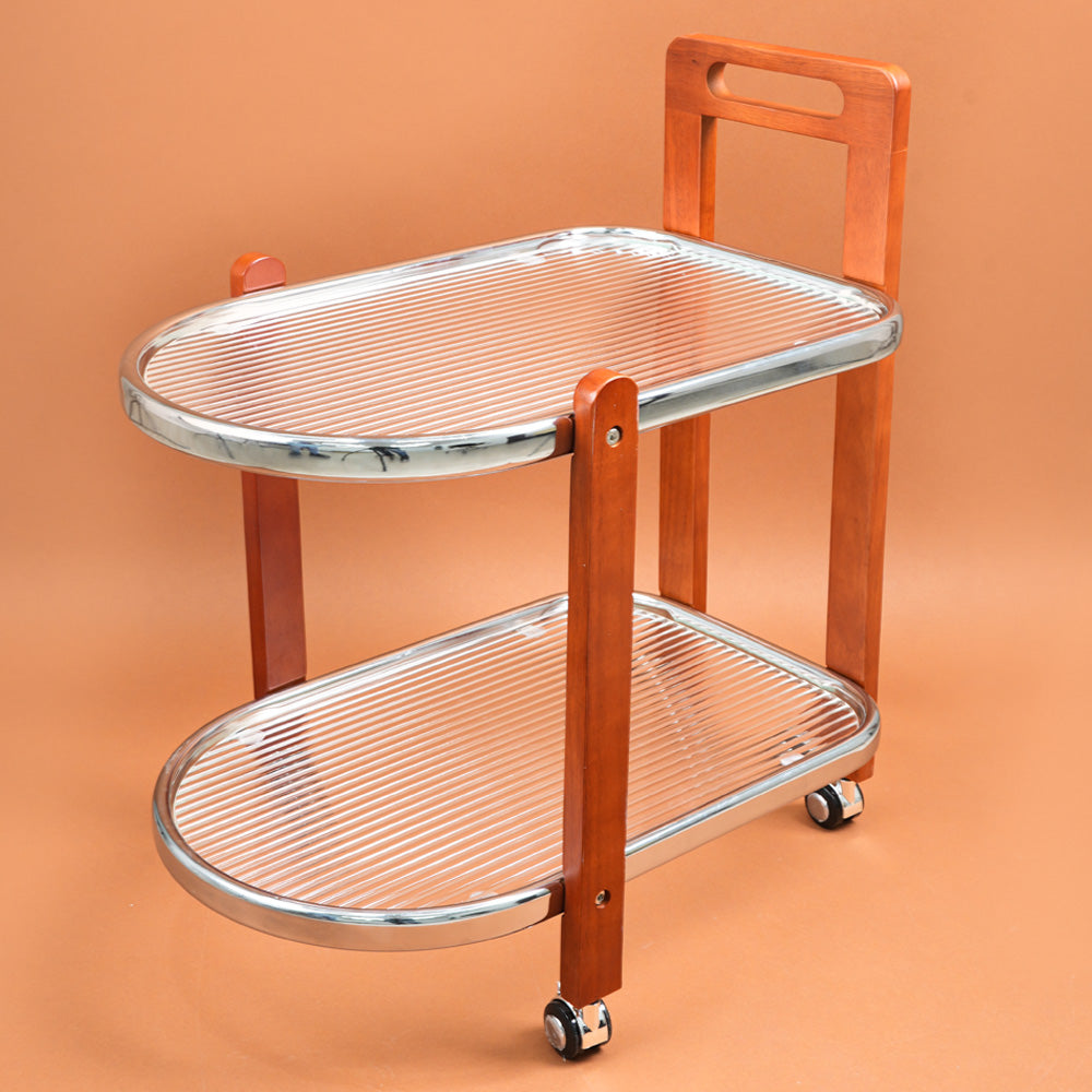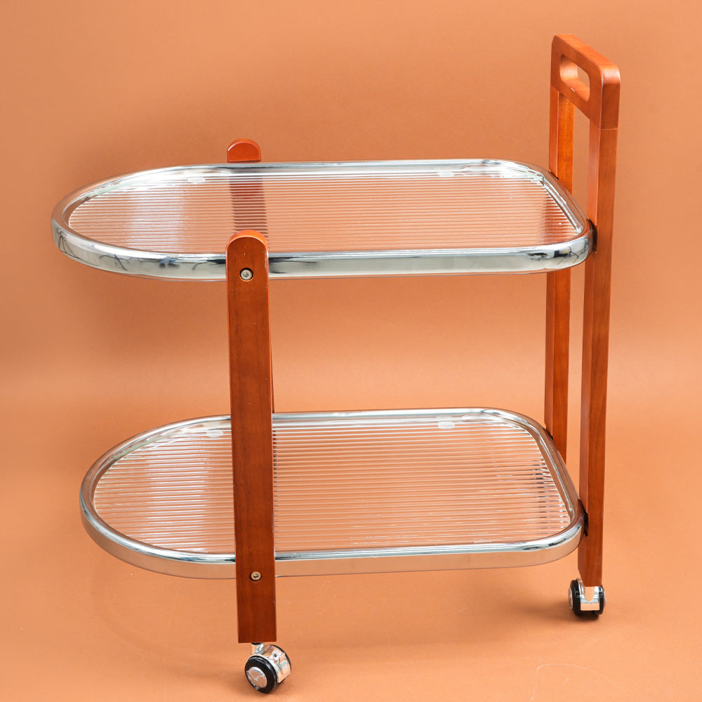 عربة متعددة الاستخدامات أنيقة وعملية، تتميز بتصميم عصري يجمع بين المعدن والزجاج، مما يجعلها إضافة مثالية لأي منزل أو مكتب.