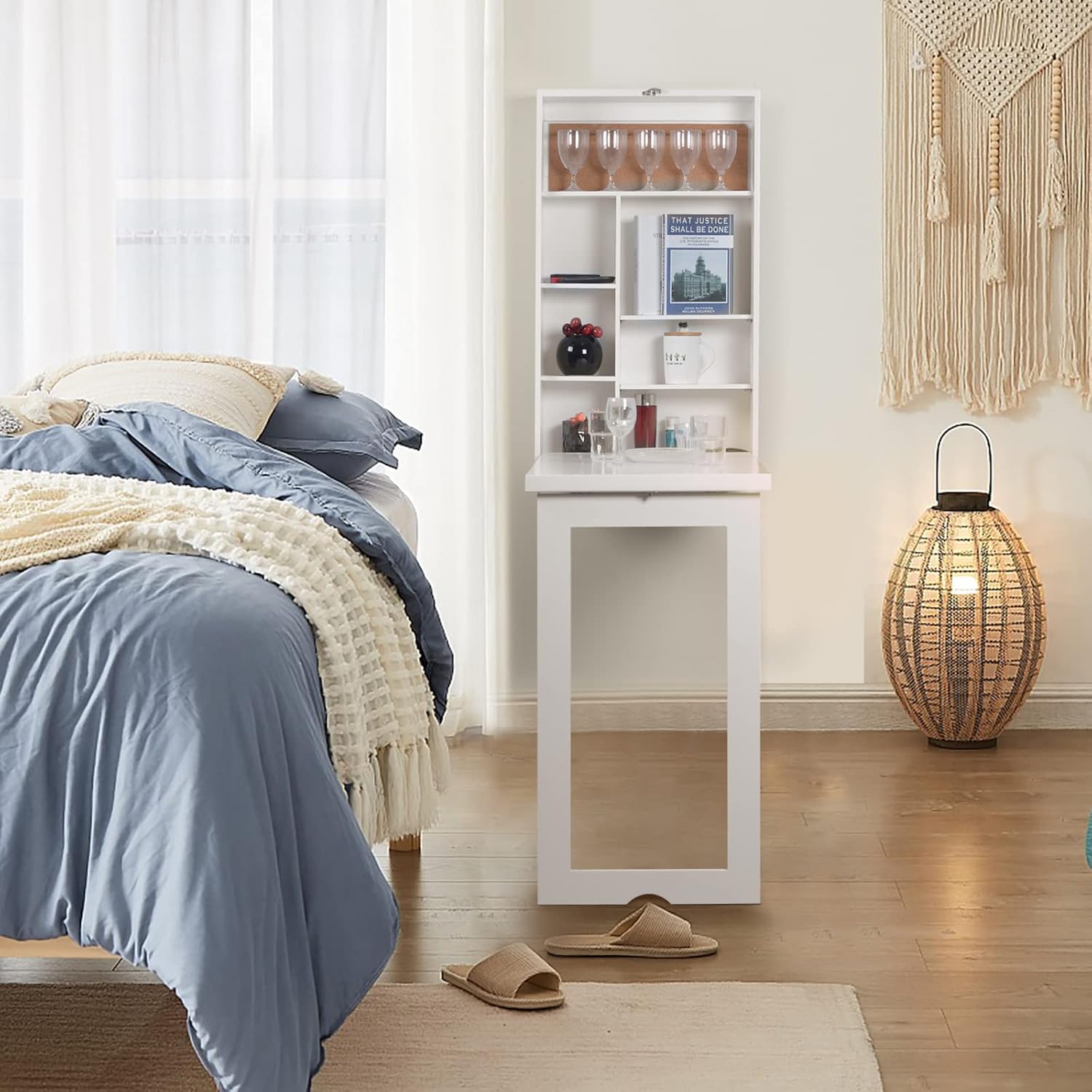 متينة وقوية: مصنوعة من مواد عالية الجودة، طاولة التخزين القابلة للطي المثبتة على الحائط مصممة لتدوم طويلاً ويمكنها دعم العناصر الثقيلة مثل الكتب وأجهزة الكمبيوتر المحمولة وأدوات العشاء.